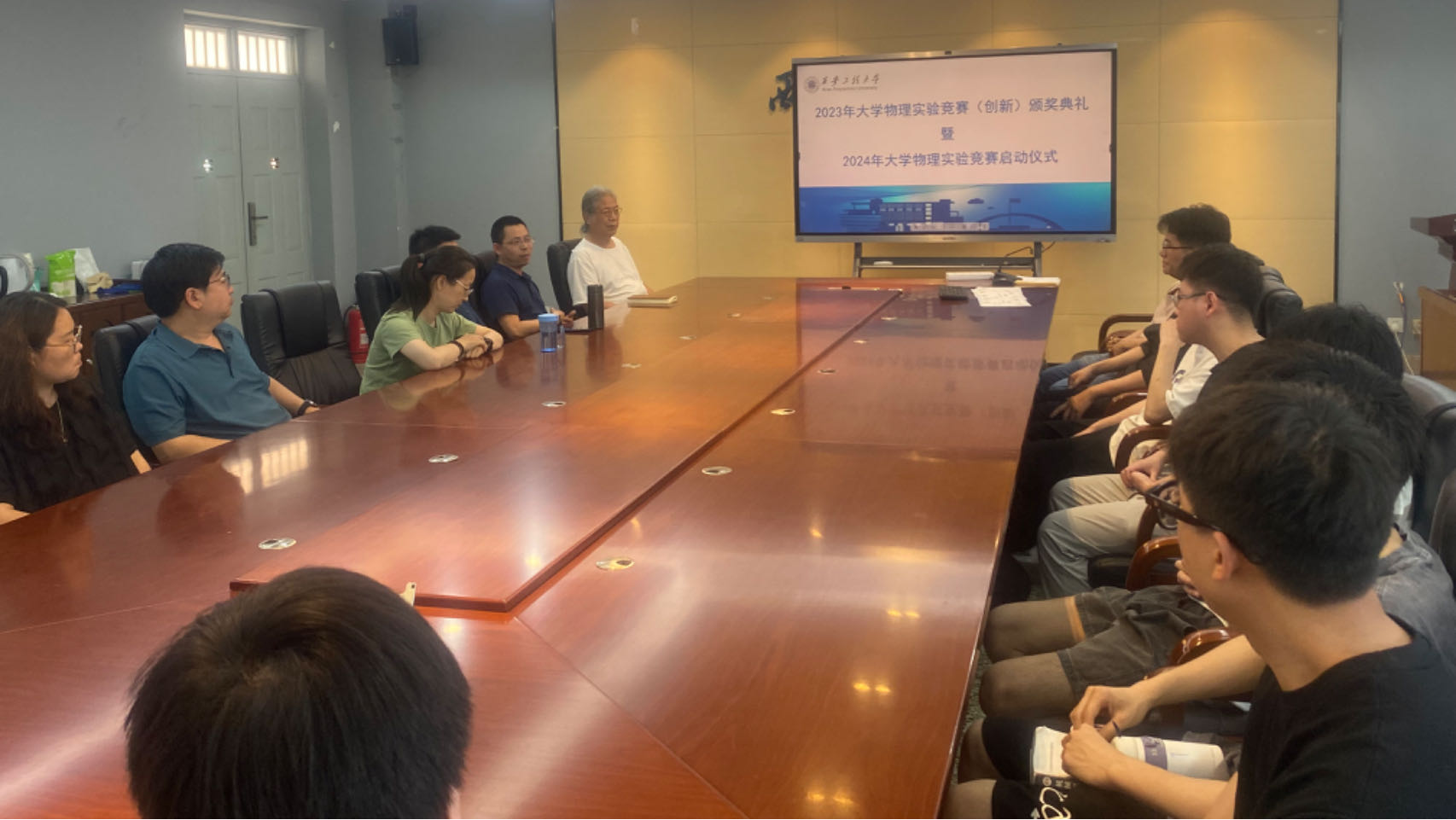 2024年5月13日中午,伟德国际victor1946官网在物理实验楼430会议室举行了2023年全国老员工物理实验竞赛获奖表彰暨2024年老员工物理实验竞赛启动宣讲会。伟德国际victor1946官网副经理成鹏飞教授、物理实验教学中心刘汉臣教授、李连碧教授,2023获奖师生代表及2024参赛师生代表参加了会议。会议由物理实验教学中心副主任卢定泽教授主持。