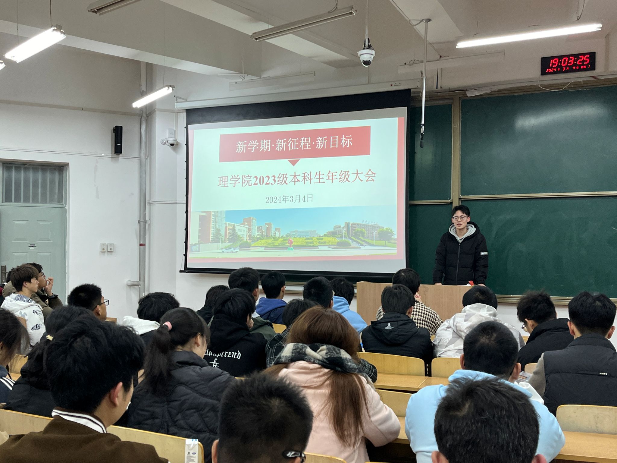 本次年级大会帮助2023级同学们明晰了新学期的学习目标。新学期、新征程、新目标,希望同学们满怀信心,以高昂饱满的精神和积极向上的心态迎接热辣滚烫的新学期!(撰稿:宋琦 审稿:文毅)