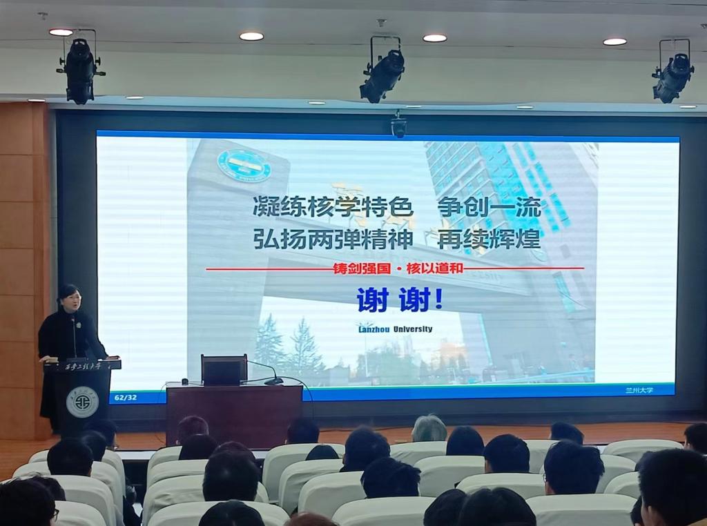 在学术沙龙上,夏蔡娟首先发表了热情洋溢的致辞,对陈熙萌教授一行的到来表示热烈欢迎,同时对陈熙萌教授进行介绍。陈熙萌教授从核能利用简介、核技术应用简介、兰州大学基本情况、兰州大学涉核研究等四个方面进行讲解。陈熙萌教授说道:“每个人都是一枚放射源——不必谈核色变。”“过去没有核我们腰杆不硬!今天没有核我们生活不美!” 这两句话向我们展示了核研究的必要性和重要性。陈熙萌教授首先围绕核成像技术、离子束分析、中子活化分析、核检测、核诱变、核示踪等方面进行了精彩的讲解,他通过深入浅出的方式,使我们对核科技有了更深的了解。同时,陈教授还详细向我们介绍了兰州大学在核研究方面的工作和进展,他指出,核科技在多个领域都有广泛应用,不仅在生产电力方面发挥着重要作用,还在城市供暖、工业供汽、海水淡化、合成燃料等诸多场景中扮演着重要角色。