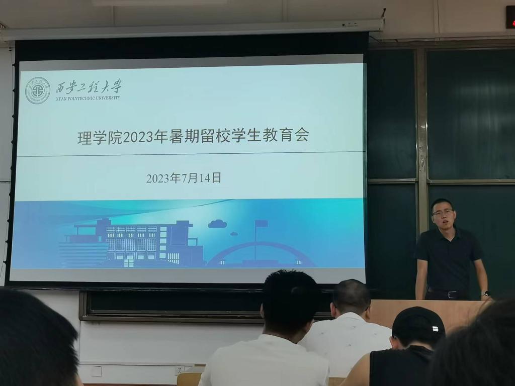 为提高暑期留校员工的安全意识,为留校员工提供优质服务,7月14日下午,伟德国际victor1946官网在临潼校区教学楼B133教师召开2023年暑期留校员工教育会。理公司党委副书记文毅主持,研究生辅导员宋宇宽、2020级辅导员宋琦和全体留校员工参会。