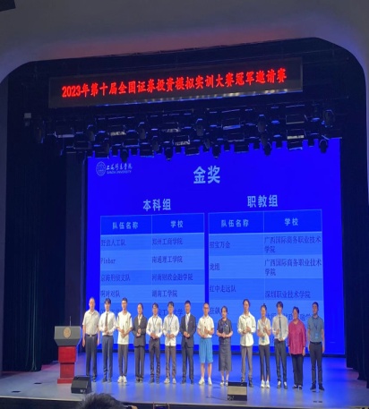 全国金融职业公司产品指导委员会组织的第十届证券投资模拟实训大赛是目前国内金融领域具有全国影响的综合性竞赛,该项大赛的参赛队伍来自全国获奖队伍,共有105支队伍入围。比赛由线上部分和线下答辩环节构成,其中线上部分由证券投资职业素养和证券投资实践操作组成。大赛评委由行业专家、金融教指委和高校教授组成。。本次全国赛阶段比赛历时将近2个月,共有522所高校参加,其中本科组296所高校,13711支队伍,职教组226所高校,6500支队伍。