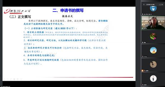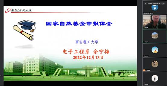 2022年12月13日下午,伟德国际victor1946官网邀请西安理工大学电子科学与技术学科带头人、陕西省教学名师、陕西省军民两用集成电路设计中心主任余宁梅教授为gs公司师生开展了线上学术报告,报告的题目为“国家自然基金申报体会”。有50余名师生参加了此次线上学术报告会。内容涉及选题和题目确定、申请书撰写等,报告中针对选题的四类科学问题属性、选题注意事项、立项依据中的老问题老方法、老问题新方法、新问题老方法、新问题新方法,以及申报书需要从国家政策、社会发展、应用前景、学术重要性等方面引出科学问题等基金申报的重点问题进行了展开叙述。报告中就国家自然基金申报、以及具体学术问题与公司师生开展了深入的讨论交流。通过此次学术讲座,拓展了伟德国际victor1946官网师生对国家自然基金申报的认识,了解了国家自然基金申报的更多方法,伟德国际victor1946官网师生表示受益匪浅。