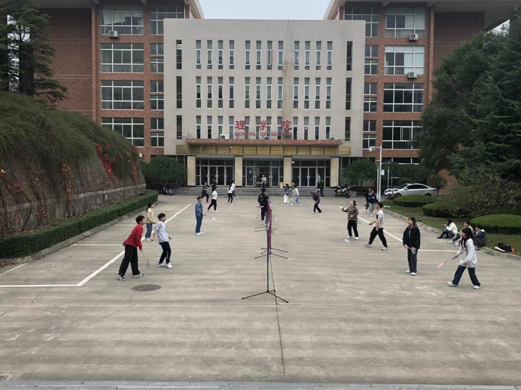体育锻炼,强身健体。为激发同学们的运动兴趣,增强同学们的身体素质,使同学们培养良好的运动习惯,争做全面发展的优秀新时代青年,开展了“健身展风采”和研究生师生羽毛球比赛,鼓励同学们积极走出宿舍,形成了“我运动、我健康、我快乐”的良好氛围。还利用物理实验楼前场地,购置搭建了羽毛球场,方便同学们体育活动。