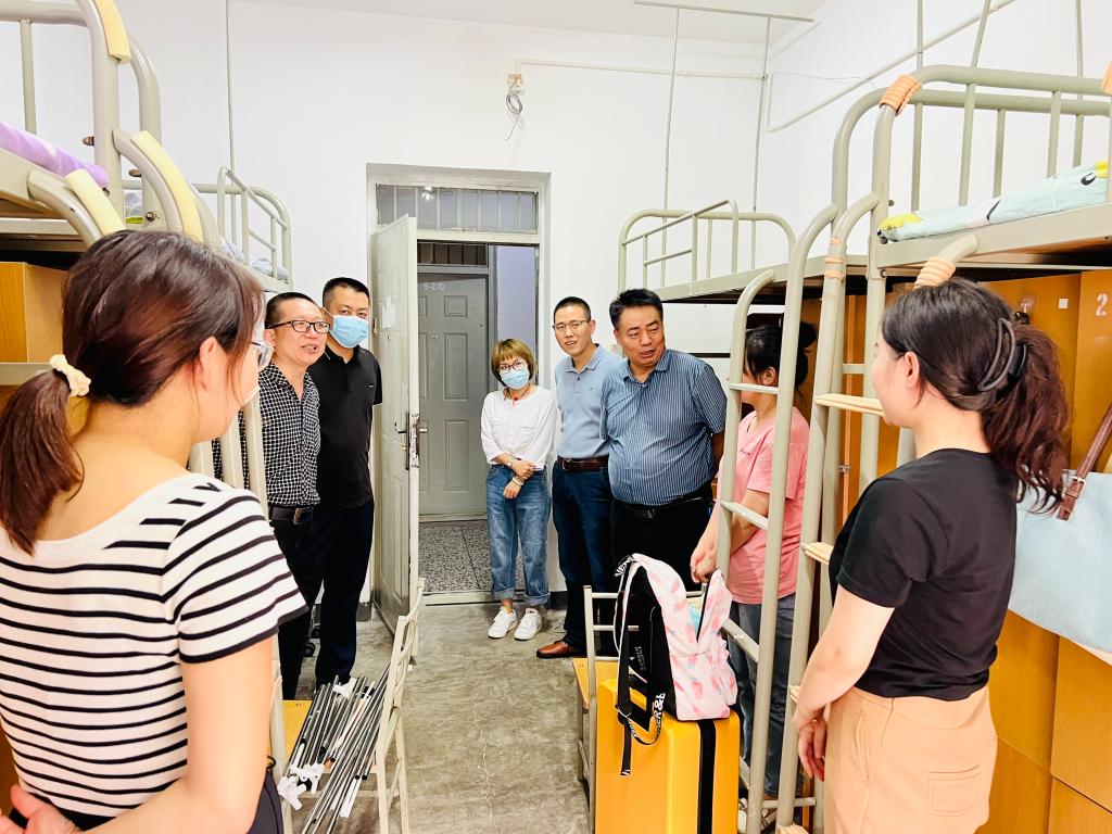9月8日,陈宣、马盈仓、孟锋、文毅、赵凯威以及新生辅导员宋宇宽、高丽君走进宿舍欢迎新生们的到来,关心询问同学们的住宿、学习和生活情况,“家是哪里的”“宿舍同学都来齐了吗”“生活上有没有什么困难”“食堂的饭菜还吃得习惯吗”……一句句关心的问候,让刚来的新生们倍感温暖。在与同学们交流过程中,老师们提醒同学们做好学业规划,合理安排入学后的学习生活,加强专业知识学习,执行可行计划,做到防疫学习两不误。叮嘱同学们注意用电安全和财产安全,保持寝室卫生通风,防范网络电信诈骗,同宿舍同学要相互关心、相互体谅过好集体生活,定期联系家长沟通。