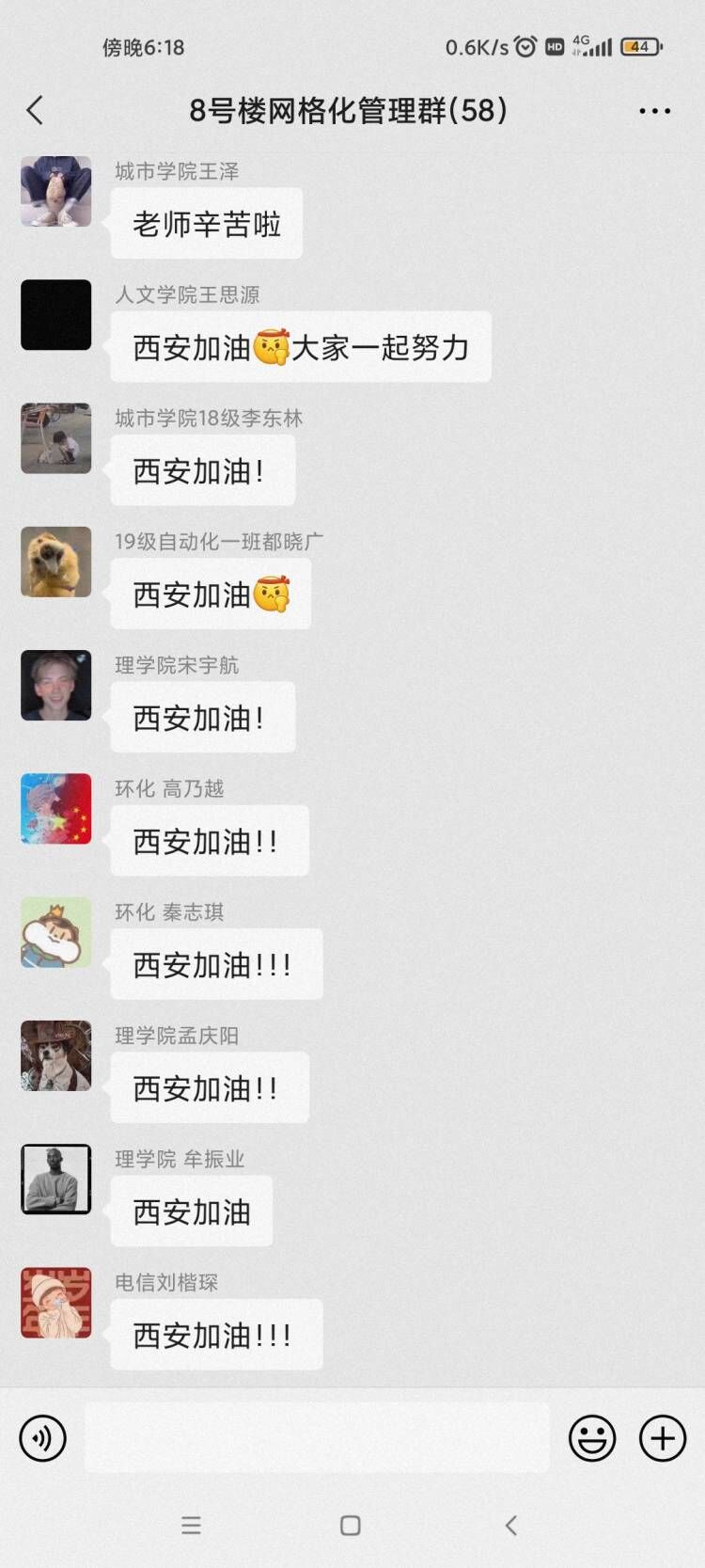 公司党政领导坚决站在防控疫情最前线,第一时间赶往临潼校区,靠前指挥、精准施策,动员全院教师协同“战疫”,形成上下一条心、全院一盘棋的工作合力,并加入到家属区、社区的志愿服务工作中;学工、团委、兄弟gs公司支持协作,院学工办主任文毅带领全体辅导员一起进驻8号员工公寓辅导员工作站,全力负责7个gs公司1490名研究生、本科生的日常教育管理服务,成立包抓工作组,摸清员工底数,织牢织密“楼长-层长-网格长-舍长”四级网格化管理制度;强化党员先锋岗队伍、优化网格员队伍、组建第二批突击队员队伍,不断强化组织力量;组织队伍专职为隔离员工定点送餐;组织包楼辅导员老师和楼内员工观看战疫思政大课,增强自信心。