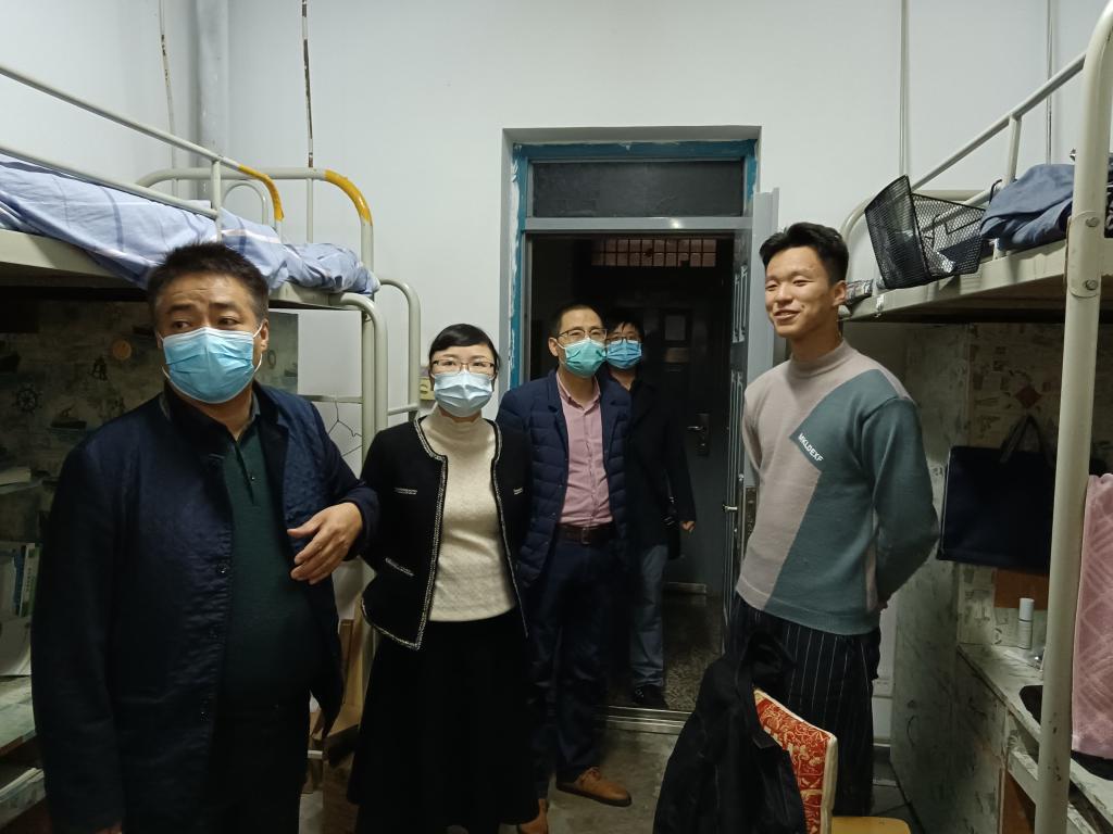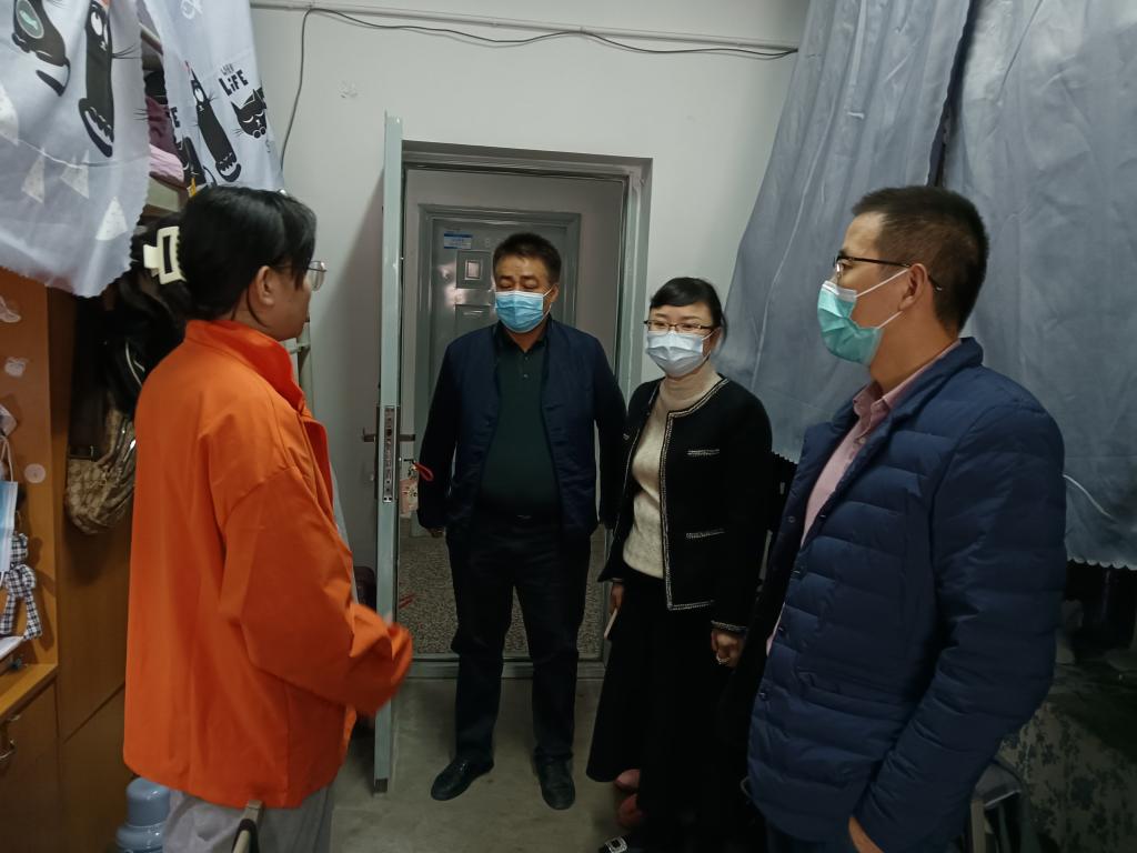 10月25日下午,理公司党委书记陈宣、经理夏蔡娟,学工办主任文毅以及全体辅导员前往员工宿舍,看望gs公司员工,检查疫情防控情况和网课上课情况,了解员工需求。