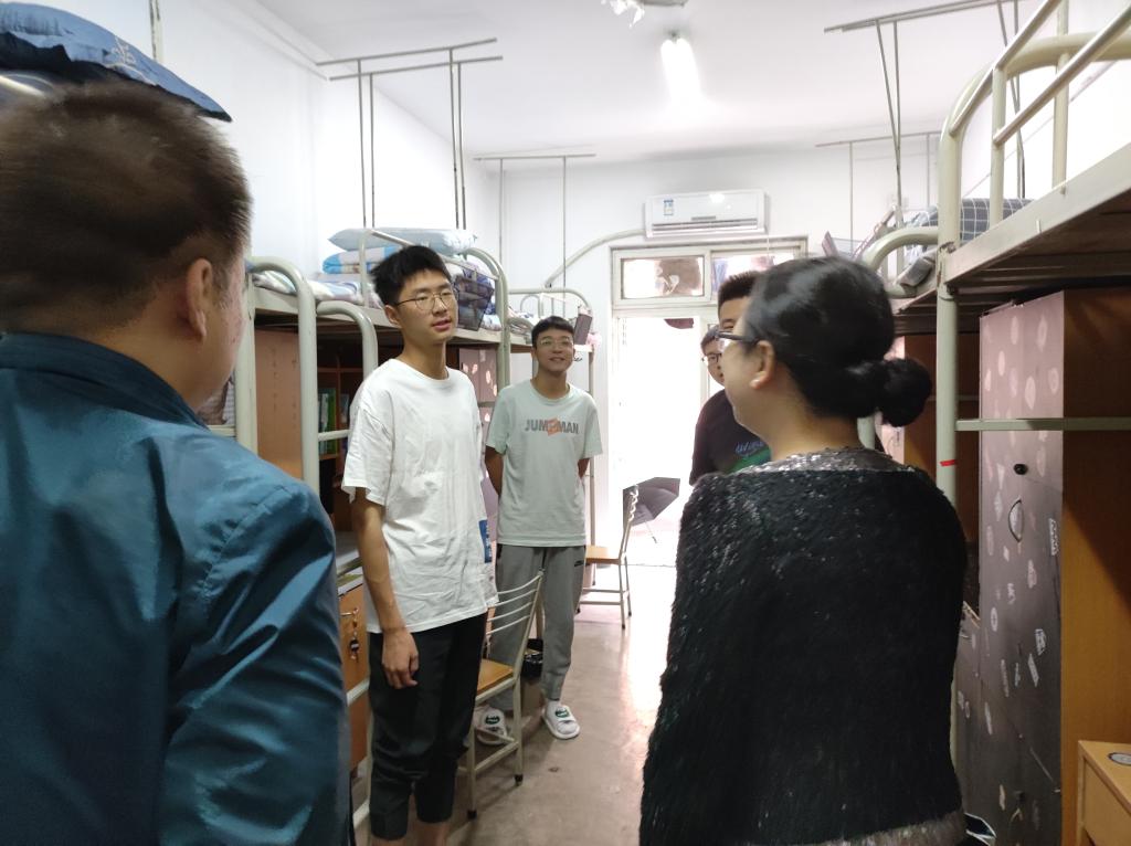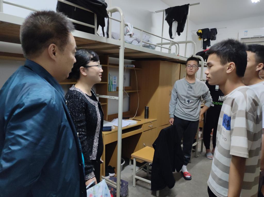 2021级新生报到结束后,理公司党委书记陈宣、经理夏蔡娟带领全体辅导员到新生宿舍走访慰问,了解新生的生活学习情况,为他们送上gs公司的关心和温暖。