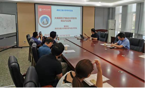 曹良志教授是国家优秀青年基金获得者、陕西省核学会秘书长,其来访目的是:第一,进行业务交流、寻找合作契机;第二,代表陕西省核学会检查公司关于陕西省首届“核+X”创意大赛的筹备工作。曹教授首先做了题为《核能发展与军民融合》的报告,报告深入浅出教授核能的发展历程、研究现状、未来趋势以及其在国家战略中的地位,并以核能为主题介绍了国家的军民融合战略,曹教授认为现阶段是军民融合发展的机遇期,西工程大获得军工保密二级资质,希冀在“民参军”战略中有所作为。随后,曹教授作了题为《大规模粒子输运分析软件验证与应用》的报告,详细介绍了团队在粒子输运方面的工作进展,并希望能和西工程大在数值分析方面加强进一步的合作,希冀其团队的研究成果在核防护纺织工程学和(器件)抗核加固技术方面获得应用。