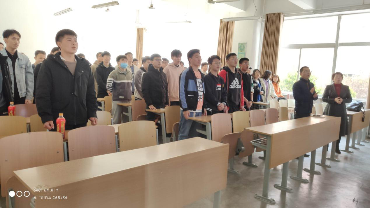 班会在师生合唱校歌的庄严肃穆的气氛下拉开,“实业报国书历史,负重奋进立华夏”,“源远流长千帆竞发,厚德弘毅博学笃行”,铿锵有力、雄壮激昂的歌声使同学们的精神一下子振奋起来。