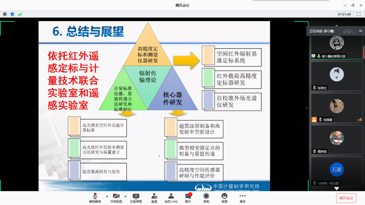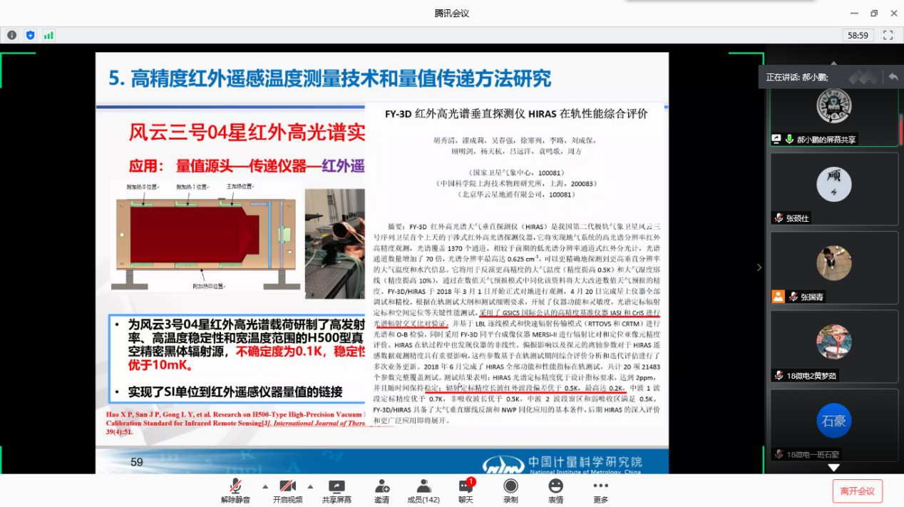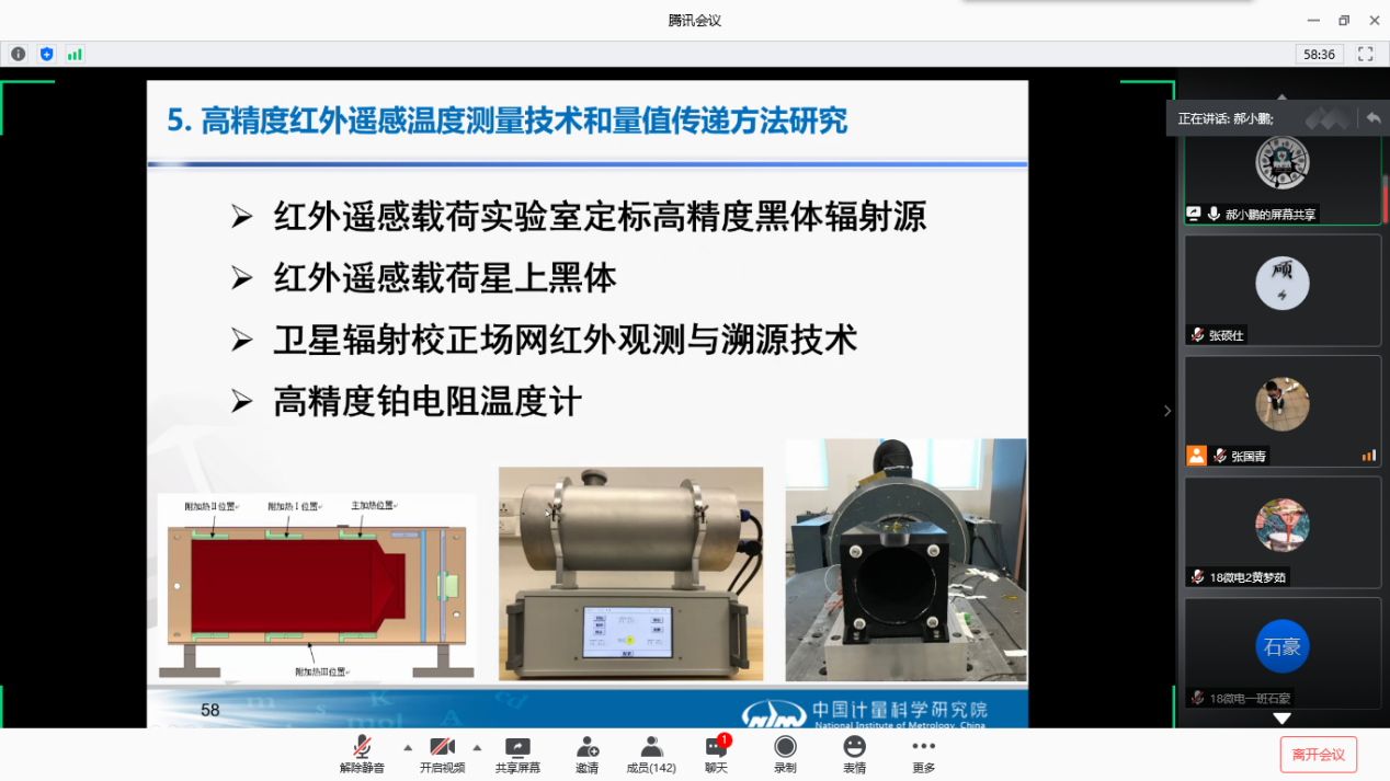 2020年7月9日上午,伟德国际victor1946官网邀请中国计量科学研究院两位专家为gs公司师生开展了线上学术讲座。来自中国计量科学研究院郝小鹏研究员和孙建平副研究员为公司师生分别做了题为“航天红外遥感高光谱亮温定标与计量技术研究进展”和“温度计量进展及在海洋温度测量的应用研究”的学术报告。有140余名师生参加了此次线上学术报告会。内容涉及真空低背景红外遥感高光谱亮度温度计量标准,红外标准传递辐射温度计,空间高精度红外辐射基准源研制,星载微型固定点温度标准器研发等方面的最新研究进展。报告中就具体学术问题以及加强本院与中国计量科学研究院的学术和员工培养的合作与公司师生开展了深入的讨论交流,气氛热烈。通过此次学术讲座,开阔了伟德国际victor1946官网师生在计量科学领域的视野,了解了该领域的前沿,伟德国际victor1946官网师生表示收获良多。