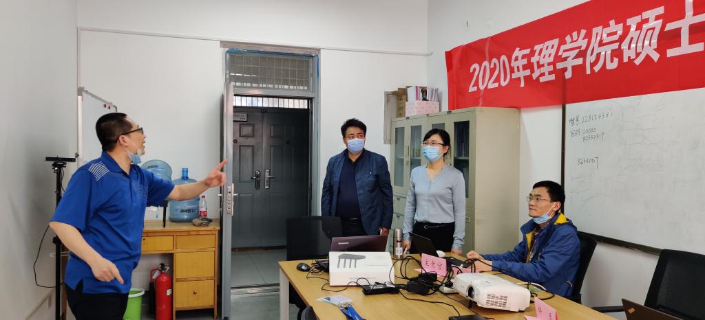 当天下午,理公司党委书记陈宣、经理夏蔡娟,党委副书记杨森、副经理马盈仓检查研究生复试相关准备工作。工作人员现场介绍了在线复试设备调试、场地安排、场地通风消杀等情况。