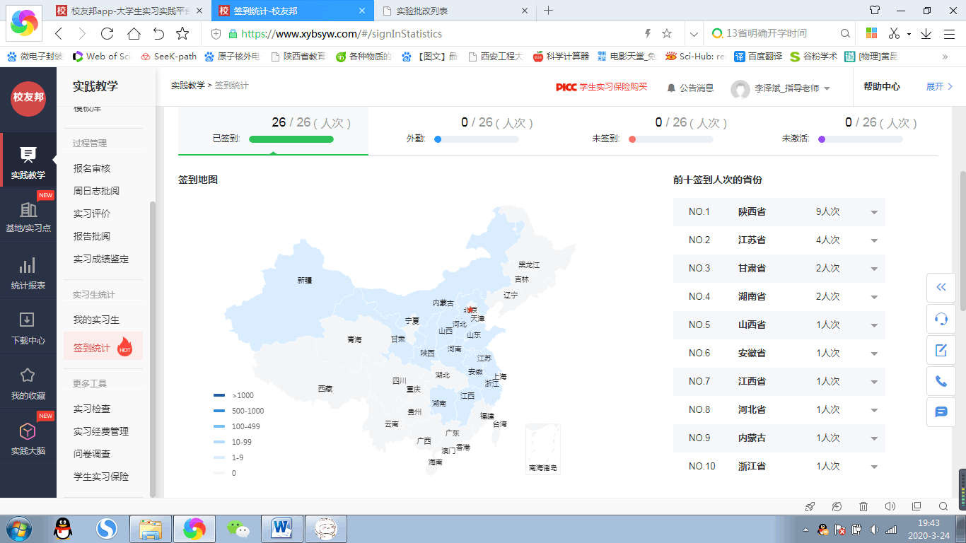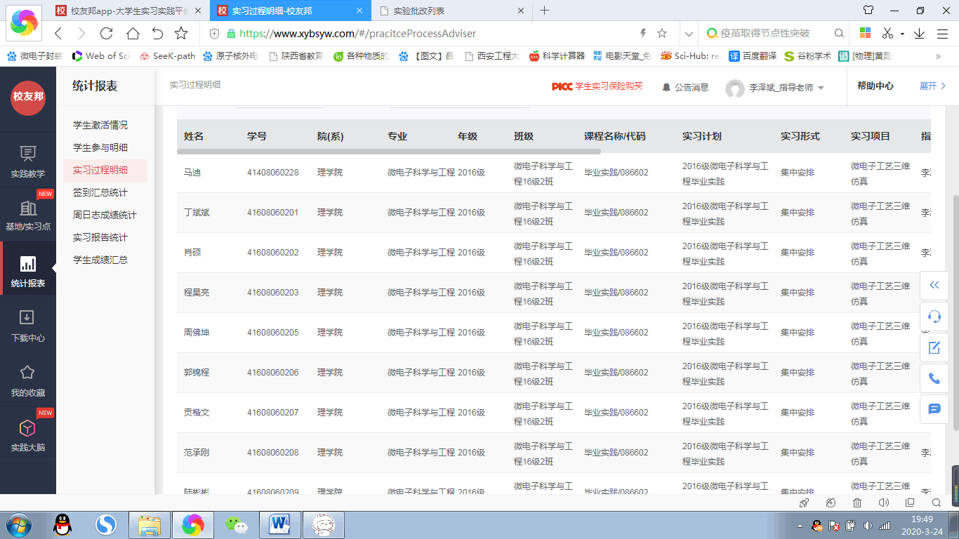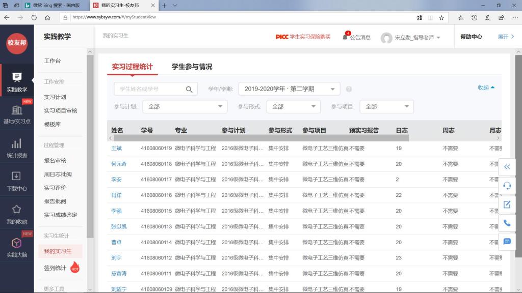 2月24日8时,在带队教师的指导下,员工逐一完成员工邦身份信息认证、伟德国际victor1946官网虚拟仿真实验项目教学平台登录、地图打卡、虚拟仿真实验项目选择等流程,顺利进入在线实践平台。指导教师利用员工邦实习实践教学管理平台,对毕业实践的全过程进行管理,包括每天员工的签到情况、一对一互动答疑、实习日志提交和最后的实习报告等。在线实践教学模式,突破了原有的时空制约和实验设备台套数限制,方便员工对实验细节进行反复观察和思考,并且通过软件模拟强化了员工关于器件仿真和集成电路设计的能力,达到了意想不到的效果。在做好教学的同时,指导教师通过每日打卡地图,及时了解员工所处地域动态,特别关注、关心处于疫区员工的学习和生活。