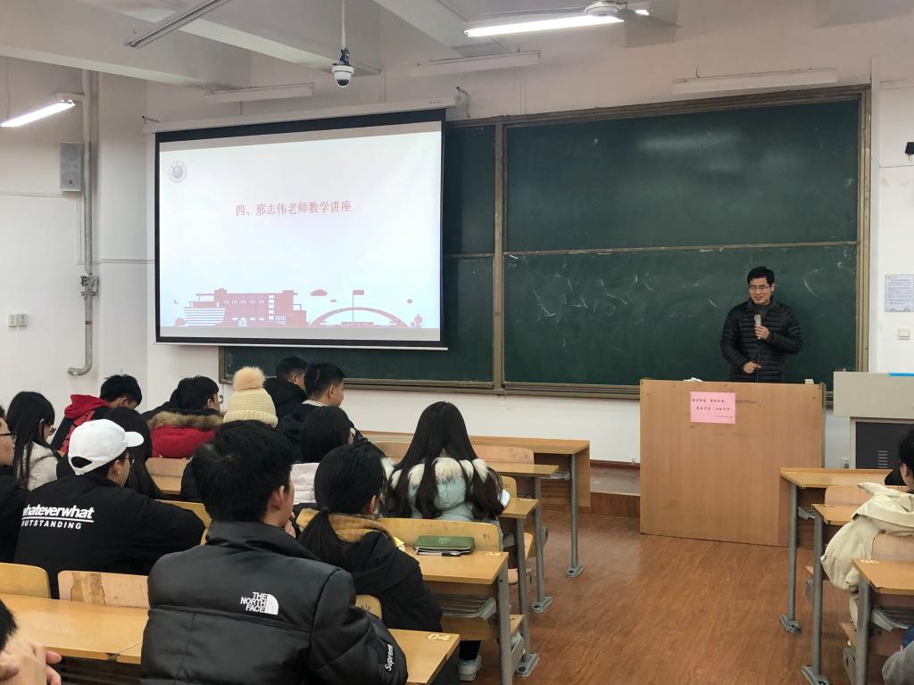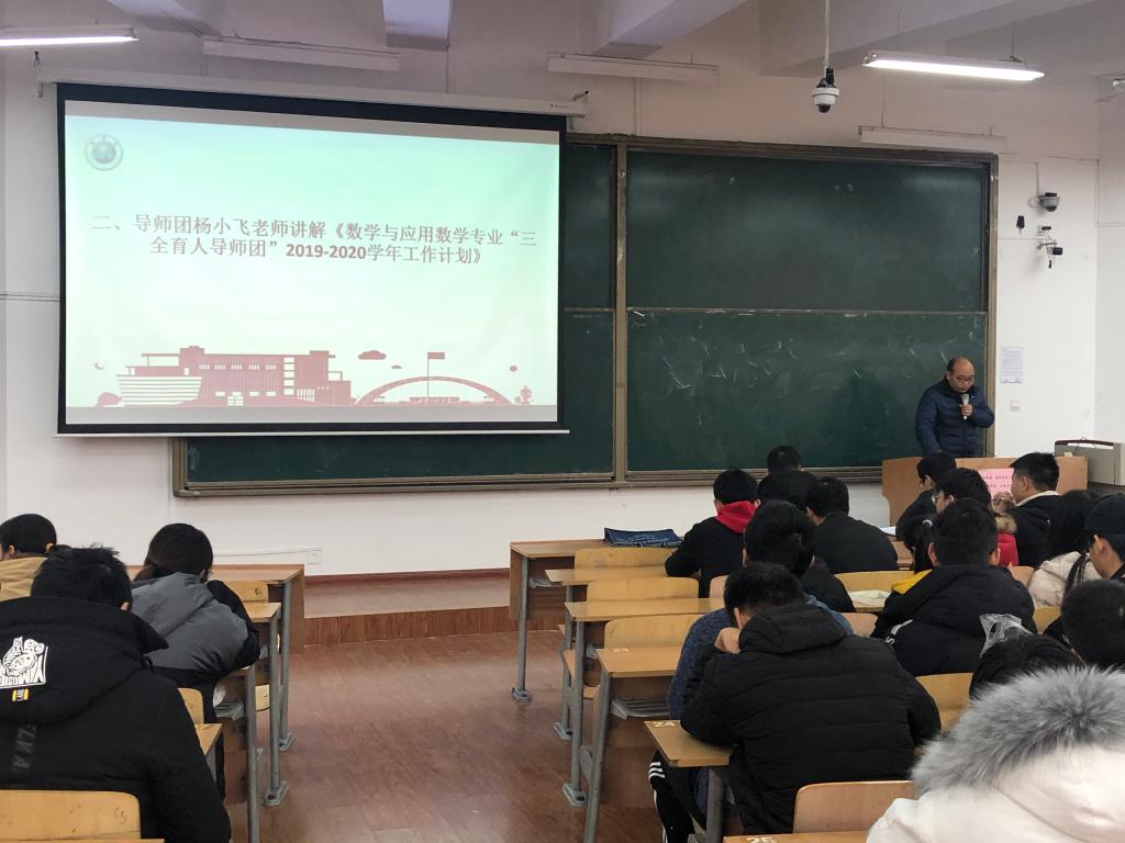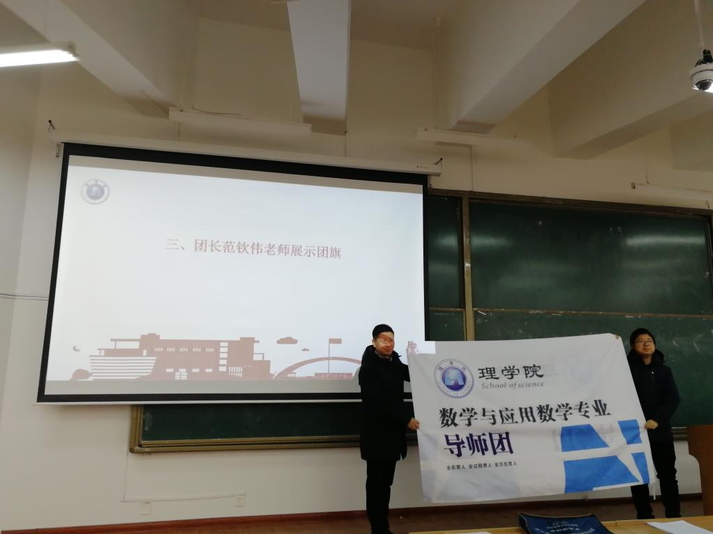 田宇飞介绍了伟德国际victor1946官网“三全育人导师团”工作开展情况;导师团团长范钦伟向同学们介绍了导师团成员组成;导师团成员杨小飞介绍了《数学与应用数学专业“三全育人导师团”2019-2020学年工作计划》,他讲到:导师团将着重加强思想政治教育、专业认知水平、创新创业引导、心理健康教育等,帮助员工明确学习目的和成才目标,促进员工专业知识、能力、素质协调发展。随后,导师团团长范钦伟和导师团秘书田宇飞向全体成员展示了数学与应用数学专业导师团团旗。最后邢志伟老师为员工做了数学讲座,他通过介绍数学在日常生活中的理论应用,以及在5G等多方面的应用实例,向同学们讲述了数学在日常生活中的实际应用和重要性。
