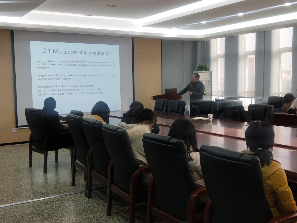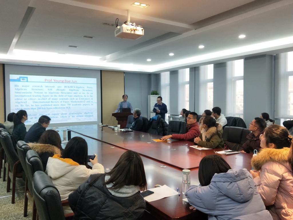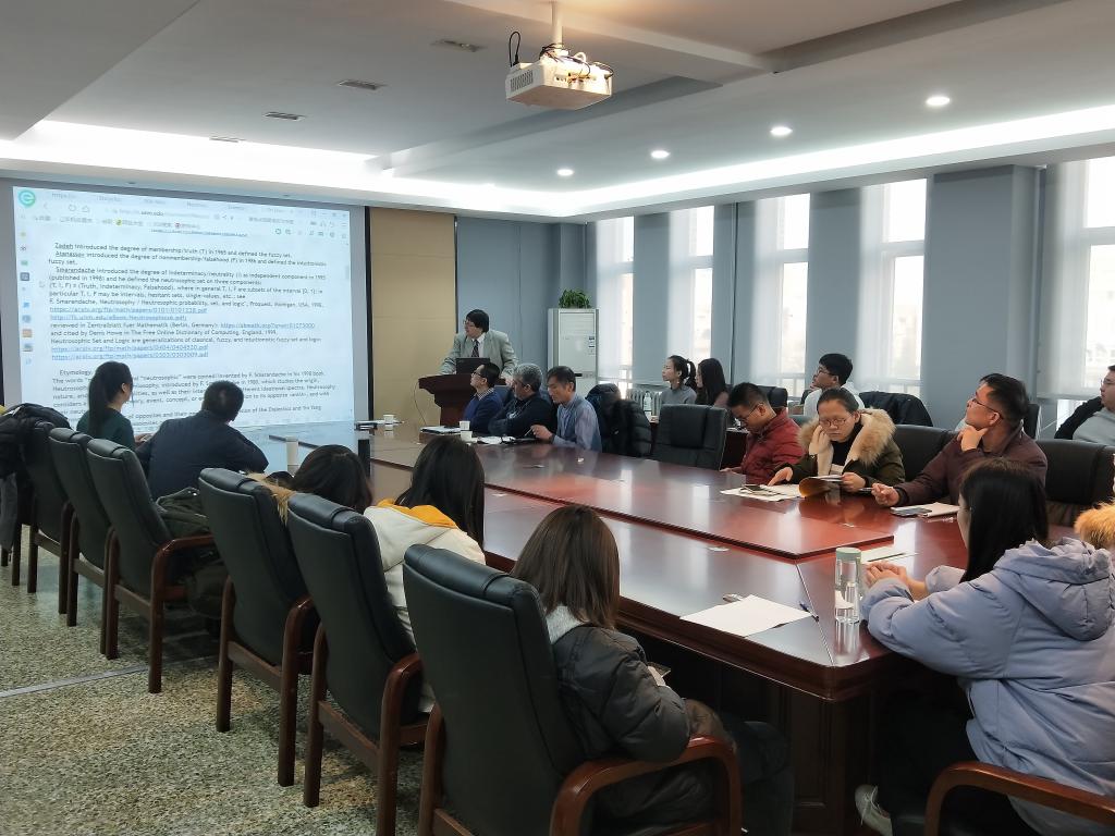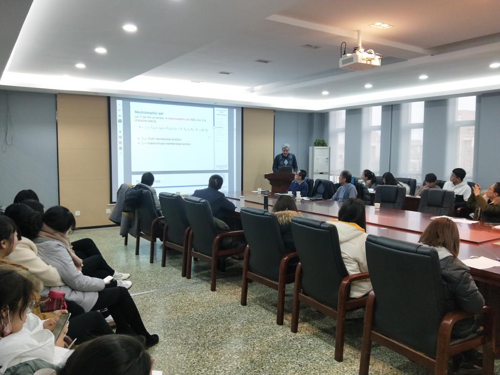 为促进国际学术交流与合作,应伟德国际victor1946官网邀请,2019年12月19日到20日,美国新墨西哥大学的Florentin Smarandache教授、韩国国立庆尚大学的Young Bae Jun教授、伊朗Shahid Beheshti 大学的 Rajab Ali Borzooei教授、英国Aberystwyth大学的副董事长Qiang Shen教授(威尔士科gs公司院士)和韩国全州全屋国立大学哲学系Eunsuk Yang副教授来伟德国际victor1946官网做学术报告,报告会在临潼校区伟德国际victor1946官网楼四层会议室进行,伟德国际victor1946官网部分教师及数学专业研究生参加了报告会。报告会分两个时段进行,由伟德国际victor1946官网副经理马盈仓主持。