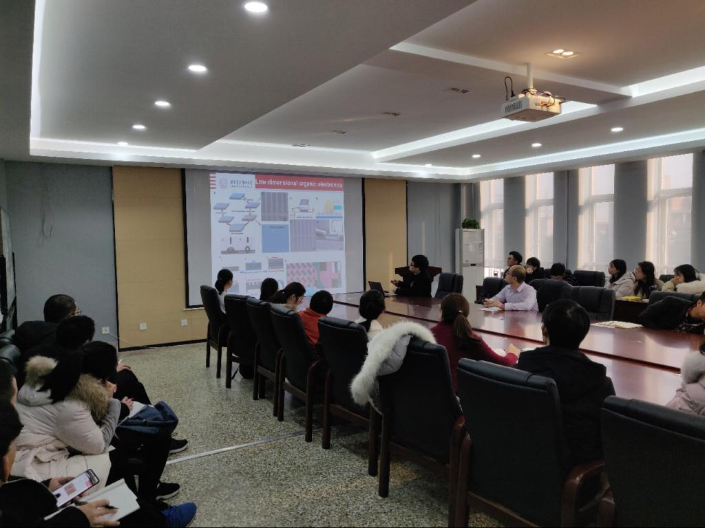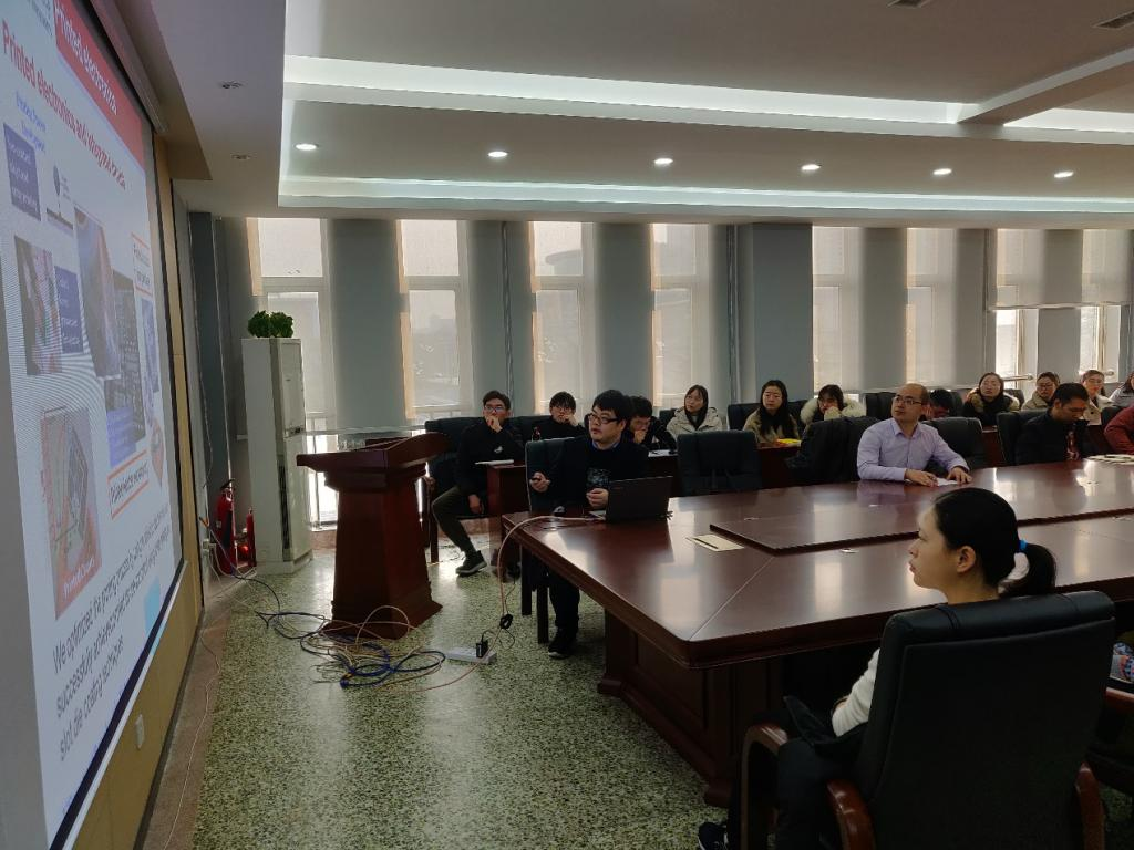 柔性电子因在可弯曲、可折叠、可延展变形的架构内保持传统电子的功能,从而赋予器件电路柔性、多功能性等优势受到人们的热切关注,并取得了一系列显著的突破。常教授在报告中介绍了他的团队在有机半导体、宽禁带氧化物半导体及钙钛矿材料在场效应晶体管、太阳能电池等方面的一系列工作。在有机半导体材料方面,通过优化材料结构来提升器件性能,进一步采用柔性印刷工艺来优化晶体薄膜及器件性能;在宽禁带氧化物半导体材料方面,通过前驱体溶液优化及掺杂来降低氧化物转变温度,实现低温高性能薄膜晶体管器件,进一步通过理论计算及实验分析,探索了低维宽禁带氧化物半导体材料在柔性电子中的应用;在钙钛矿太阳能电池方面,通过采用有效的薄膜优化和界面钝化,同时通过低温氧化物界面层及异质结的优化,器件性能及稳定性有了很大程度提高,基于反式平面结构的钙钛矿太阳能电池的效率可以实现22%以上。本次报告拓展在座教师的学术视野,提升了在座员工的科研积极性。