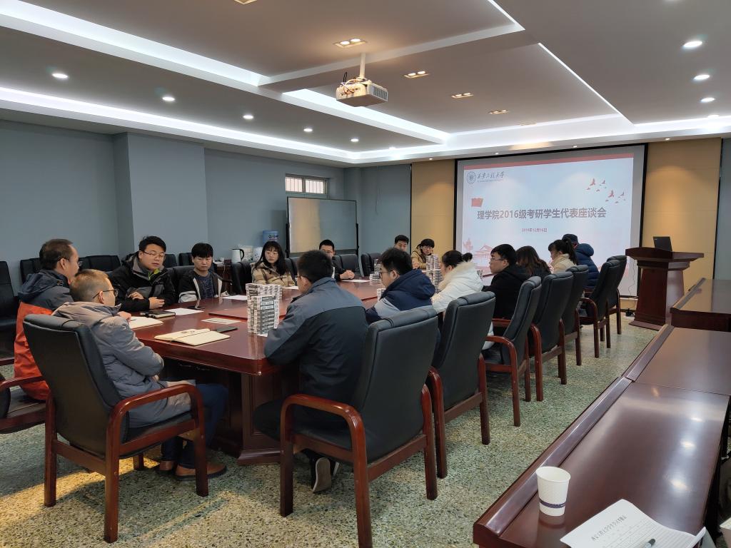按照伟德国际victor1946官网三全育人导师团工作方案要求,为进一步帮助同学们调整临考心态,增强考研信心,提升考研竞争力。12月16日中午,gs公司在临潼校区物理实验楼431会议室召开了2016级考研员工座谈会,公司党委副书记杨森,员工工作办公室主任文毅和部分考研员工参加了座谈会,会议由gs公司就业工作辅导员宋宇宽主持。