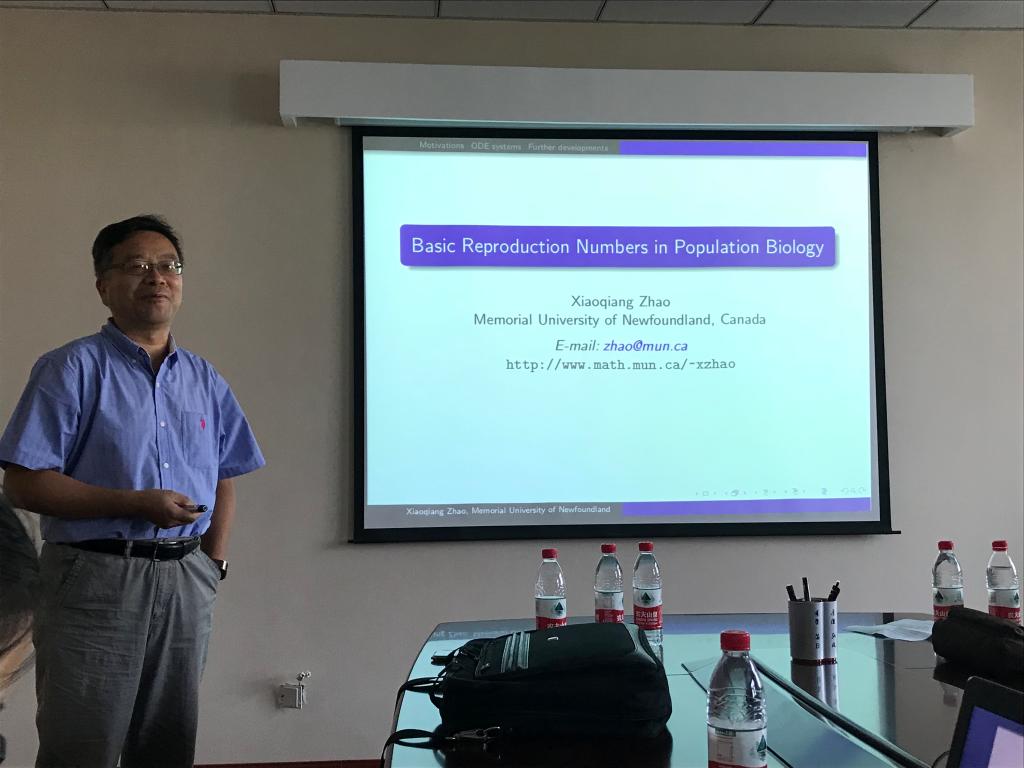 2019年9月30日,应伟德国际victor1946官网邀请,纽芬兰纪念大学赵晓强教授在公司临潼校区行政楼320会议室做了题为“Basic Reproduction Numbers in Population Biology”的学术报告。此次报告会由伟德国际victor1946官网贺兴时教授主持,伟德国际victor1946官网多名青年教师和研究生参加了报告会。