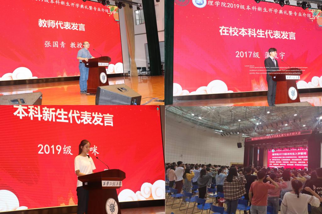 典礼在庄严的国歌声中拉开帷幕,成鹏飞首先介绍了gs公司的学科发展、专业设置、团队力量、培养体系等基本情况。教师代表、物理学科主任、国家自然科学基金获得者张国青,在校本科生代表、院员工会主席、2017级员工蒲俊宇,新生代表、2019级员工赵咪依次在典礼上做了发言。
