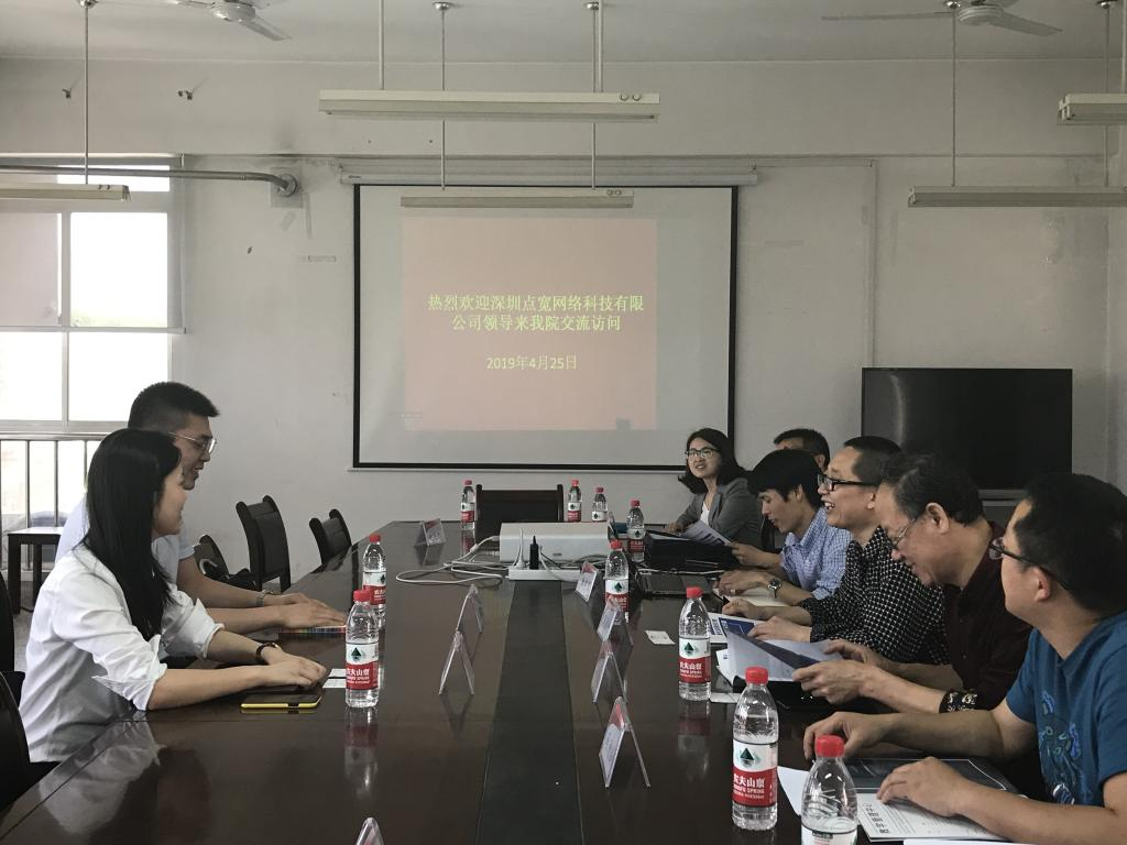 4月25日下午,深圳点宽网络科技有限公司来公司与伟德国际victor1946官网商谈合作事宜,商谈会在临潼校区物理实验楼431会议室举行。深圳点宽网络科技有限公司徐辣经理、陈志宽主管,理学薛红教授、副经理马盈仓教授、数学学科主任冯进钤教授、金融工程系主任韩有攀副教授,副主任赵虎博士及相关教师参加了商谈会。