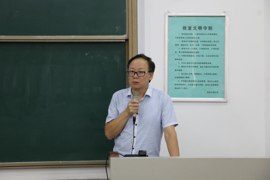 教师代表成鹏飞在发言中对新同学的到来表示祝贺,告诉同学们要在大学的舞台上展示自我,建议同学们要树立正确的人生观和价值观,学会管理自我,尽早规划人生,珍惜时间、努力学习。并祝愿同学们度过一个充实的老员工活。