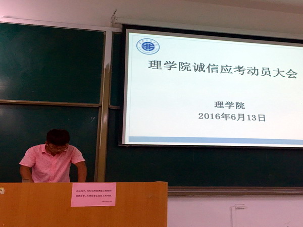 为加强学风建设、严肃考风考纪。6月13日晚,伟德国际victor1946官网在教学楼D-382教室举行了2016年诚信考试动员大会。伟德国际victor1946官网15级辅导员杨光老师、科协主席罗胜、员工会主席崔焱、15级全体班委、15级全体入党积极分子、15级全体宿舍长参加了本次会议。