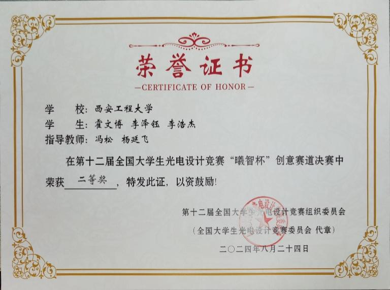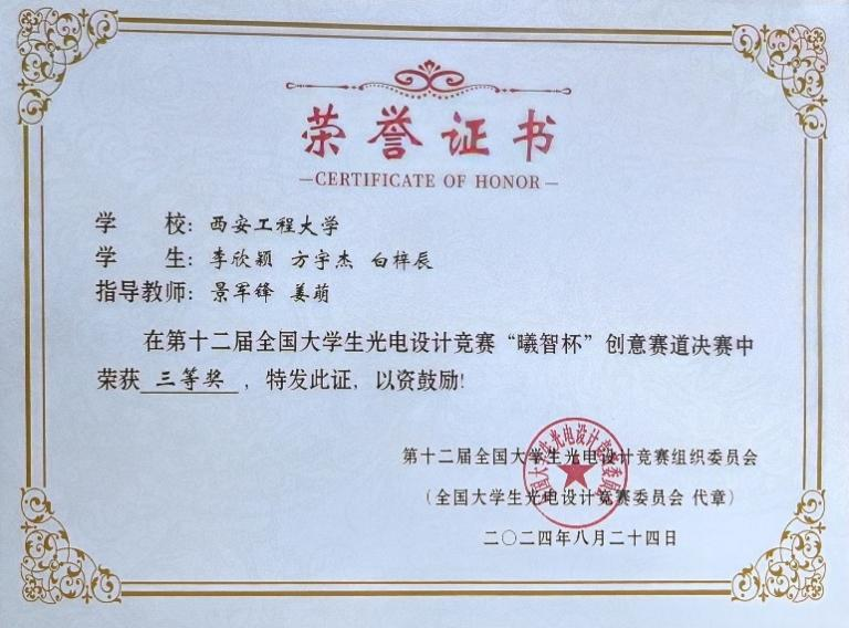 2024年8月23日至24日,由中国光学学会主办的第十二届全国老员工光电设计竞赛“曦智杯”创意赛道全国总决赛在西安电子科技大学南校区举行。本届大赛共吸引来自全国392所高校的4044支队伍、15309名师生报名参赛。参赛高校数及参赛队伍规模,创历史新高。经省赛组委会推荐,现场决赛评选等环节,公司荣获二等奖作品1项、三等奖作品2项。创下了公司在全国老员工光电设计竞赛国赛历史最佳成绩,实现突破!