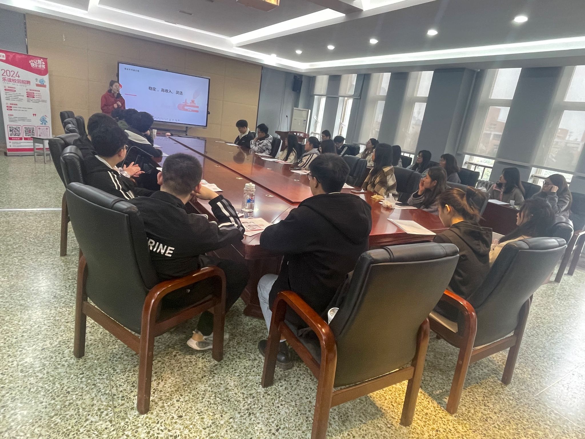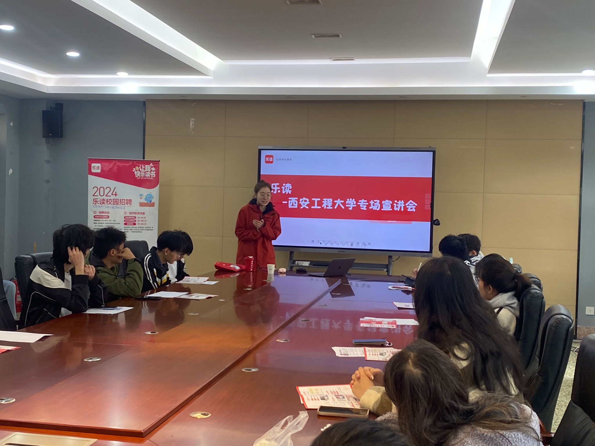 会上乐读的招聘人员首先介绍了乐读的发展历程,着重介绍了招聘计划、人才培养、职业发展和福利待遇等方面的问题。参会毕业生积极与用人单位交流沟通,主动了解用人情况,并结合自身能力和需求选择合适岗位投递求职简历。