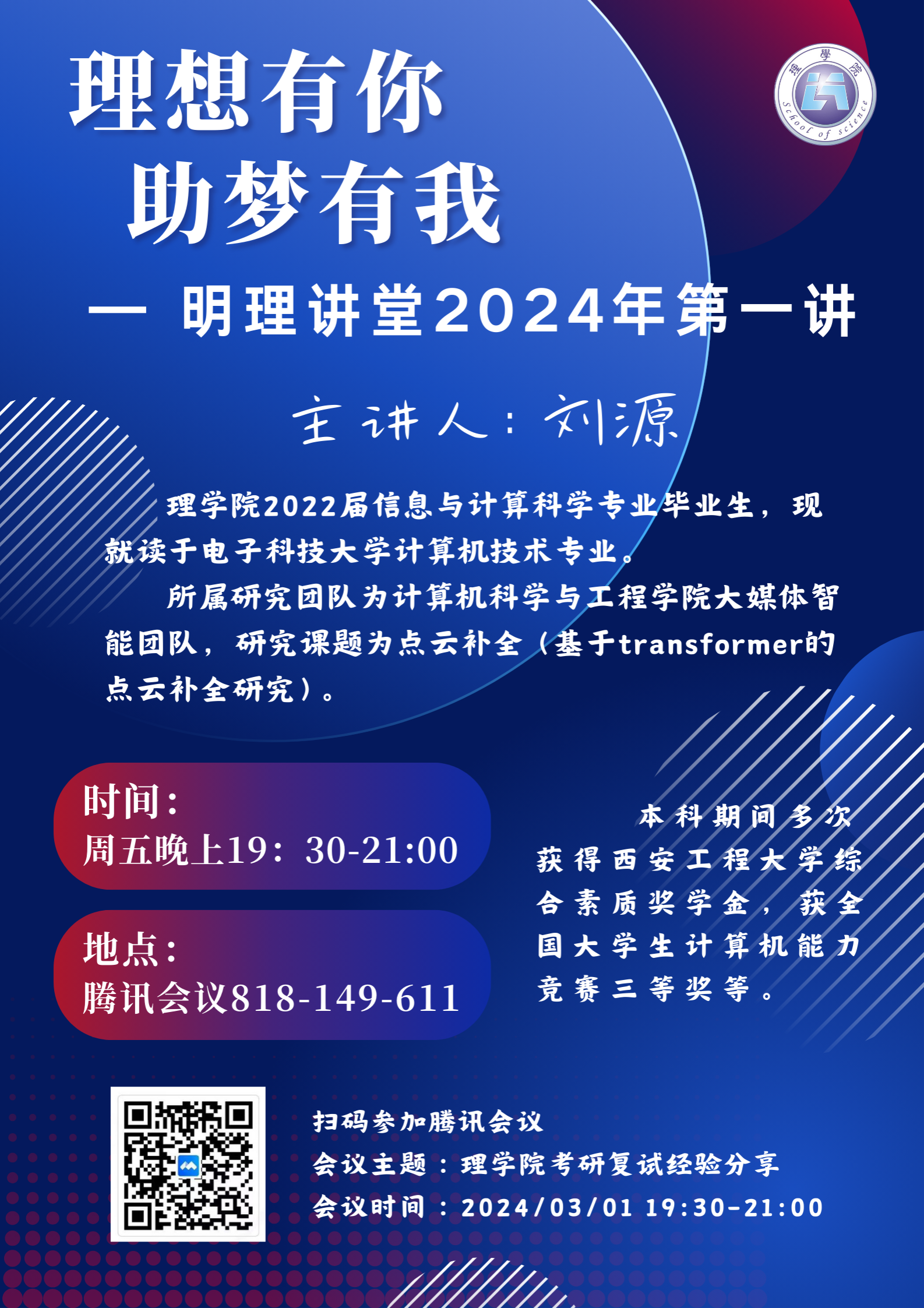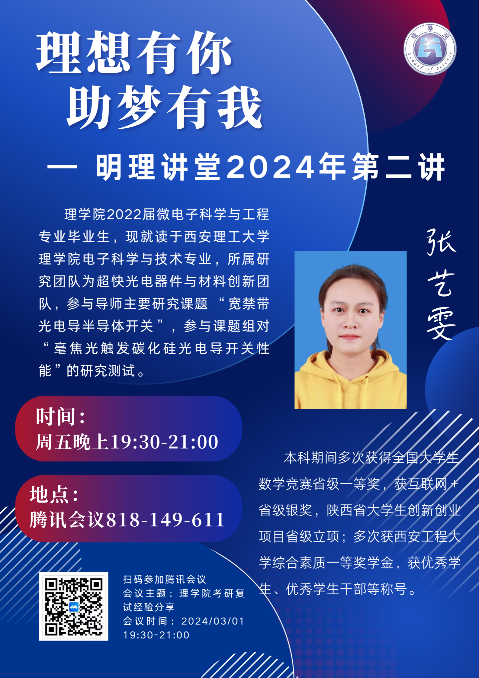 为帮助2024届即将参加考研复试的毕业生加深对复试流程的了解、掌握复试技巧、增强复试信心,进一步做好考研学子的指导服务工作,2024年3月1日,伟德国际victor1946官网通过腾讯会议的方式邀请现电子科技大学硕士在读的公司2018级信息与计算科学专业毕业生刘源以及现西安理工大学硕士在读的公司2018级微电子科学与工程专业毕业生张艺雯就考研复试进行经验分享。