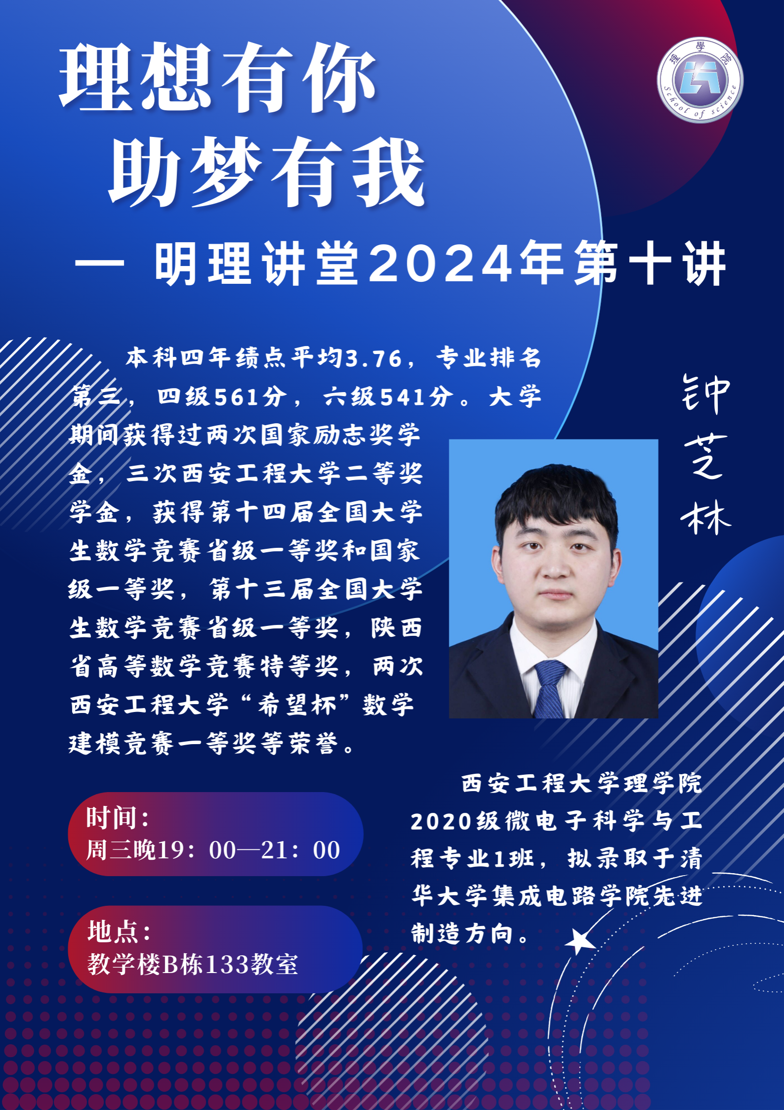 为帮助大一新生明确学习目标,合理规划大学四年的学习与生活,伟德国际victor1946官网于4月17日在临潼校区教学楼B-133举办理想有你,助梦有“我”之明理讲堂2024年第十、十一讲。邀请成功考研至清华大学的公司2020级微电子科学与工程1班钟芝林以及推免至中国科gs公司大学的信息与计算科学1班刘嫚开展考研信息交流和学习经验分享,2023级全体本科生参会,会议由2023级辅导员宋琦主持。