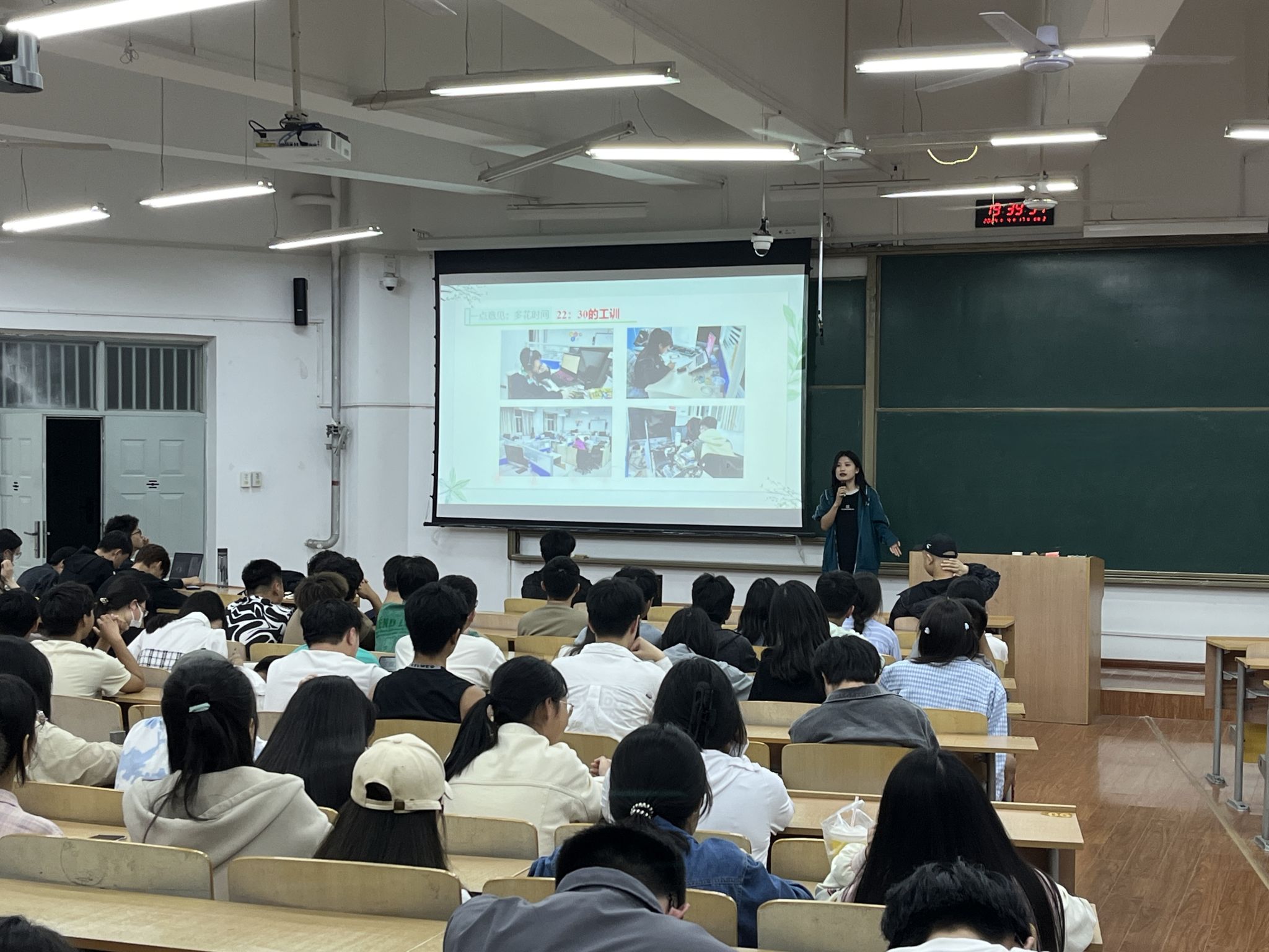 会上,钟芝林就大学期间的学习经验及考研经历进行分享,详细介绍了政治、英语、数学和专业课的复习时间安排和学习策略,以“数学科目备考策略”为侧重点,为同学们分享了概率论、线性代数以及高等数学等学习技巧。结合自身科研比赛经历,他讲解了科研比赛技巧,鼓励同学们积极联络导师和同学,在科研实践中提高自身综合素质。同时,他鼓励学弟学妹们要扎实学好专业知识,拥有接受失败的勇气,要做有能力、有底气去选择的那个人。接着,刘嫚分享了她的推免经历,仔细讲述了关于保研推免的基本流程、推免条件、各个时间线节点和需要准备的材料,特别强调了5-7月夏令营的重要性。最后,她提醒同学们要合理规划大学四年的学习任务,不管是推免、考研或者就业,要敢想、敢考、敢拼。