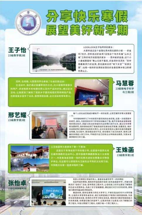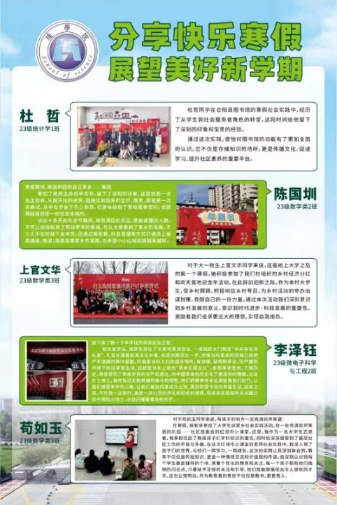 在活动刚发布不久,同学们就展现出了自己的热情与才能,提交了一份份优秀的活动作品。在这些形式多样的作品中,有在寒假中投身于社会实践活动的身影;有色香味俱全、挑动人们味蕾的地方特色美食;也有或壮阔或宁静的美丽风景,活动结束后,工作人员对所有作品进行了汇总,并选出了十份最优秀、最能展现寒假生活意义和新学期目标的作品,制作成了专属展览板进行展示。