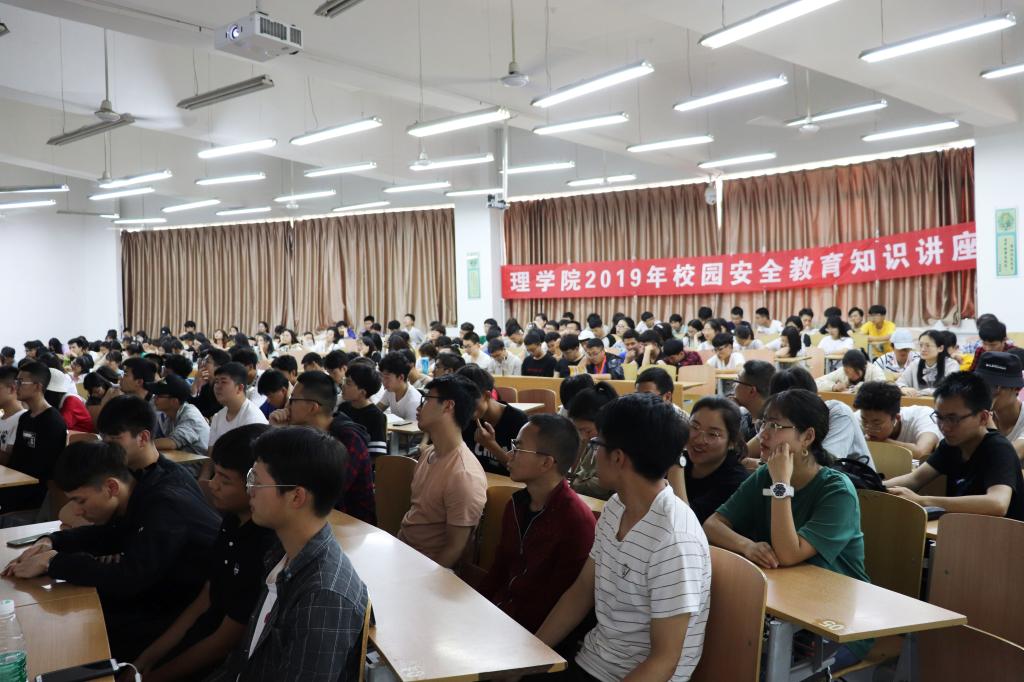 讲座中,樊聪教员特别详细讲解了校园火灾事故发生的原因、存在的安全隐患以及预防措施等,以图文并茂、深入浅出的方式,介绍了各种火灾现场特点、正确的灭火方法以及针对不同场所、不同类型火灾如何正确自救和向外界救援做了简明扼要的讲解。樊聪教员语言风趣幽默,同学们热情认真,积极参与,讲座气氛十分活跃。
