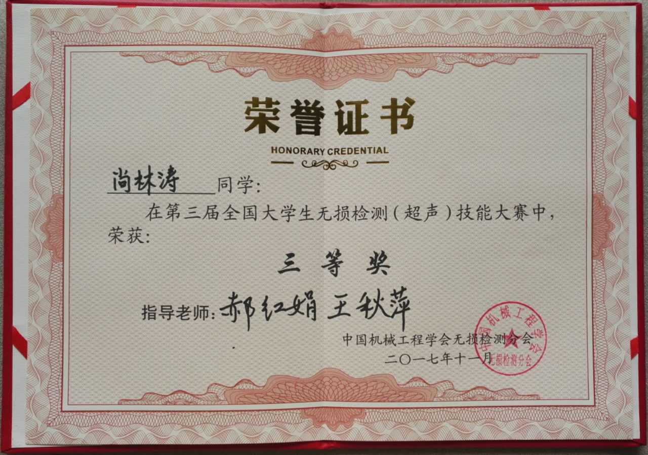 11月17至18日,由中国机械工程学会无损检测分会主办,南昌航空大学承办的第三届全国老员工无损检测(超声)技能大赛在江西南昌举行。此次大赛吸引了来自南昌航空大学、昆明理工大学、西南石油大学等二十多所高校的160多名师生参加。由公司伟德国际victor1946官网王秋萍、郝红娟两位老师带领的公司参赛队荣获佳绩。