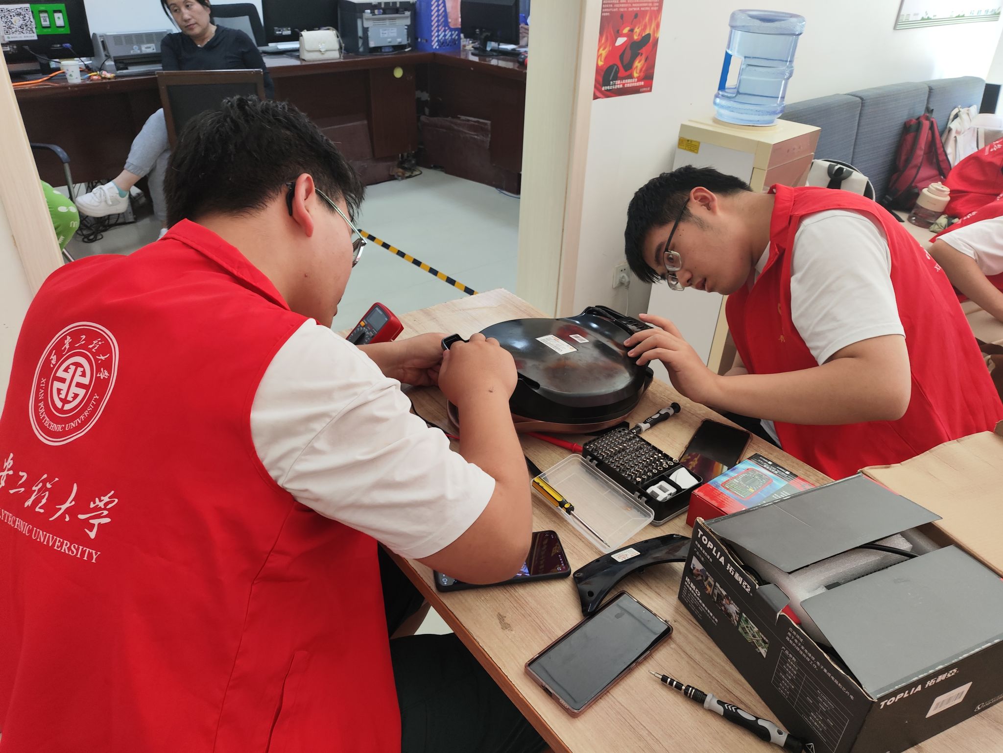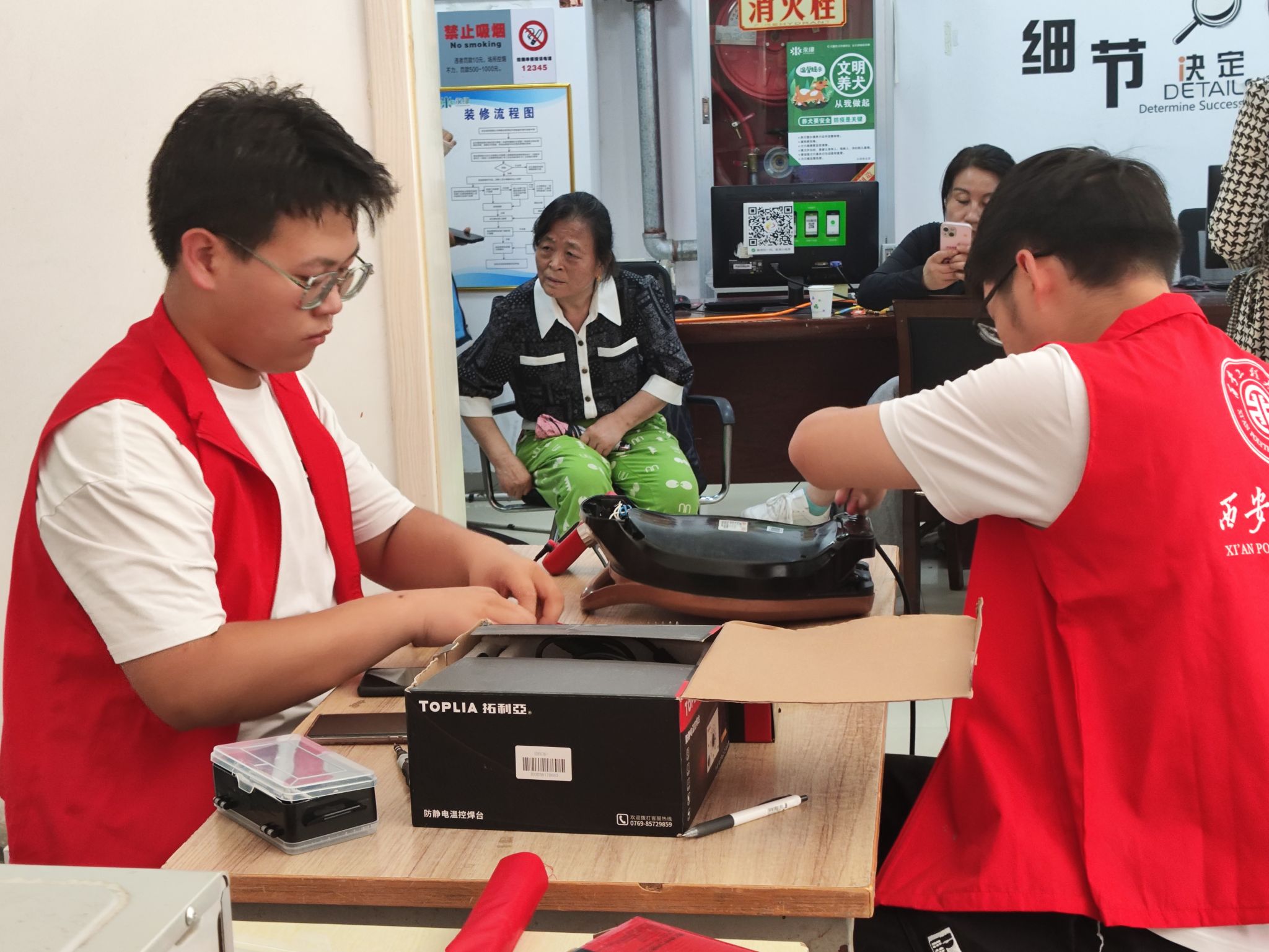 此次活动以“义务维修进社区,志愿服务暖人心”为主题,在骊山花城社区活动现场,社区居民纷纷将有维修需求的笔记本电脑、烧水壶、电饭煲、音响等小家电送至现场,同学们发挥所长,团结协作,帮助居民们排查、维修小家电。受到社区居民的一致好评,