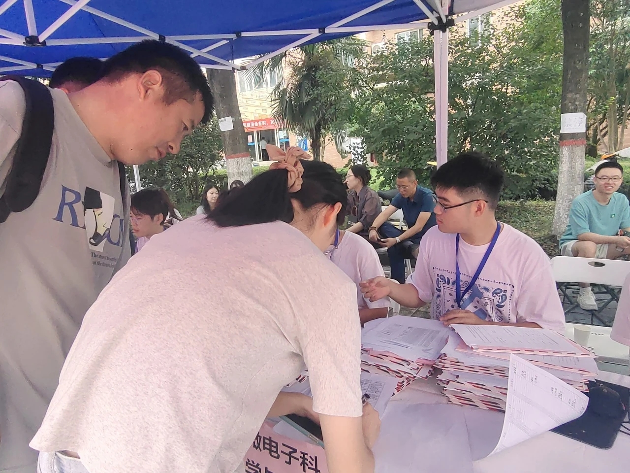 8月26日,新生开学第一天, 2024级新生带着父母和老师们的殷切嘱托和期盼,走入工程大校园,开启崭新的青春之旅。在片片欢声笑语中,新生或是在家长陪同下,或是与朋友一起,来到中心广场的迎新点进行报到,在迎新志愿者的协助下填写个人信息登记表,进行个人信息的核对。