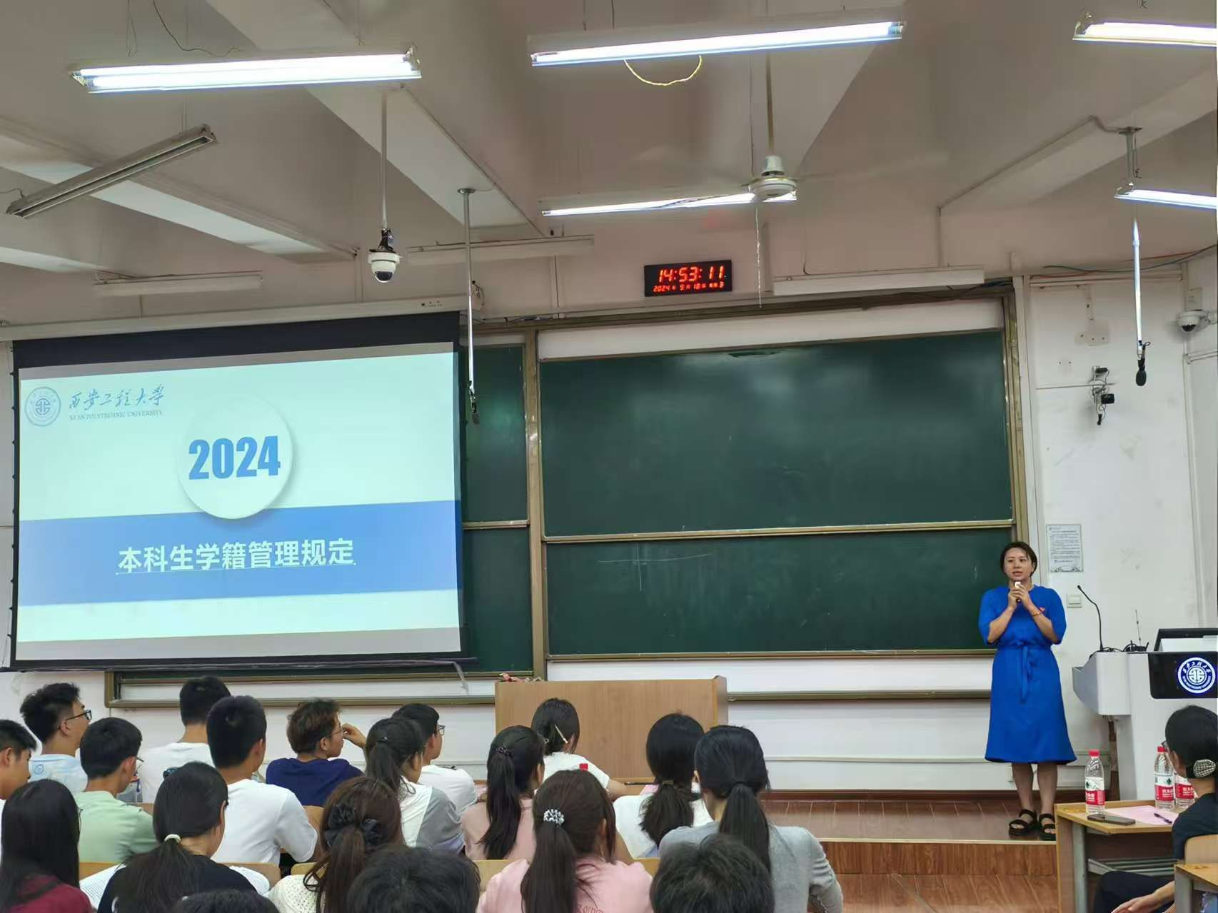 侯梦来介绍了公司近年来本科生国际交流项目的总体概况和申请等环节;教务员张紫娟从入学注册、学业考核、学籍异动处理、学位授予条件到考试纪律等对学籍管理和创新学分进行了详细讲解;院团委书记田宇飞详细解读了第二课堂活动的丰富内容、学分认定的具体标准、考核要求及认证流程。文毅在主持中结合工作实际对网络游戏、恋爱交友、科学理性用网、防诈防骗、法制观念养成等方面做了提示和强调。