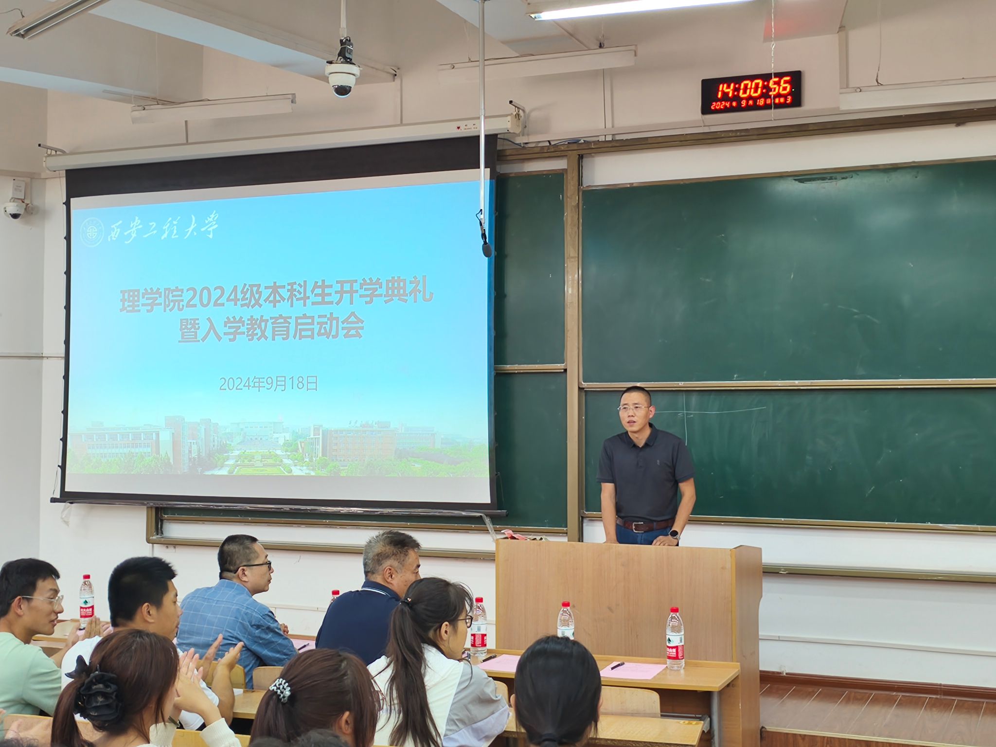 为助力gs公司2024级新生了解校情院情,顺利融入老员工活,9月18日下午,伟德国际victor1946官网在临潼校区B133教室举行了本科新生开学典礼暨入学教育启动会。理公司党委书记陈宣、经理马盈仓,国际处侯梦来,系部负责老师苏耀恒、冯松、刘婷婷、黄勇攀以及教务员、辅导员等参加。会议由公司党委副书记文毅主持。
