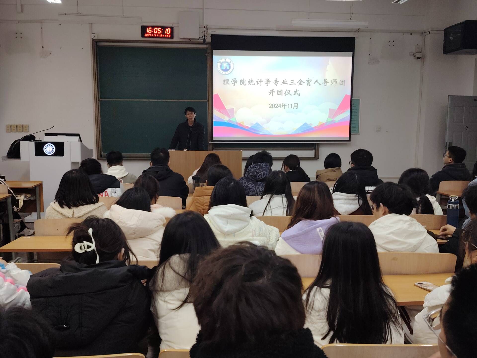 11月19日下午,伟德国际victor1946官网统计学专业在临潼校区A102教室举行2024-2025学年“三全育人”导师团开团仪式。统计系主任、导师团团长韩有攀出席本次仪式,统计学专业2024级全体员工和2023级部分员工参加,会议由导师团秘书宋琦主持。