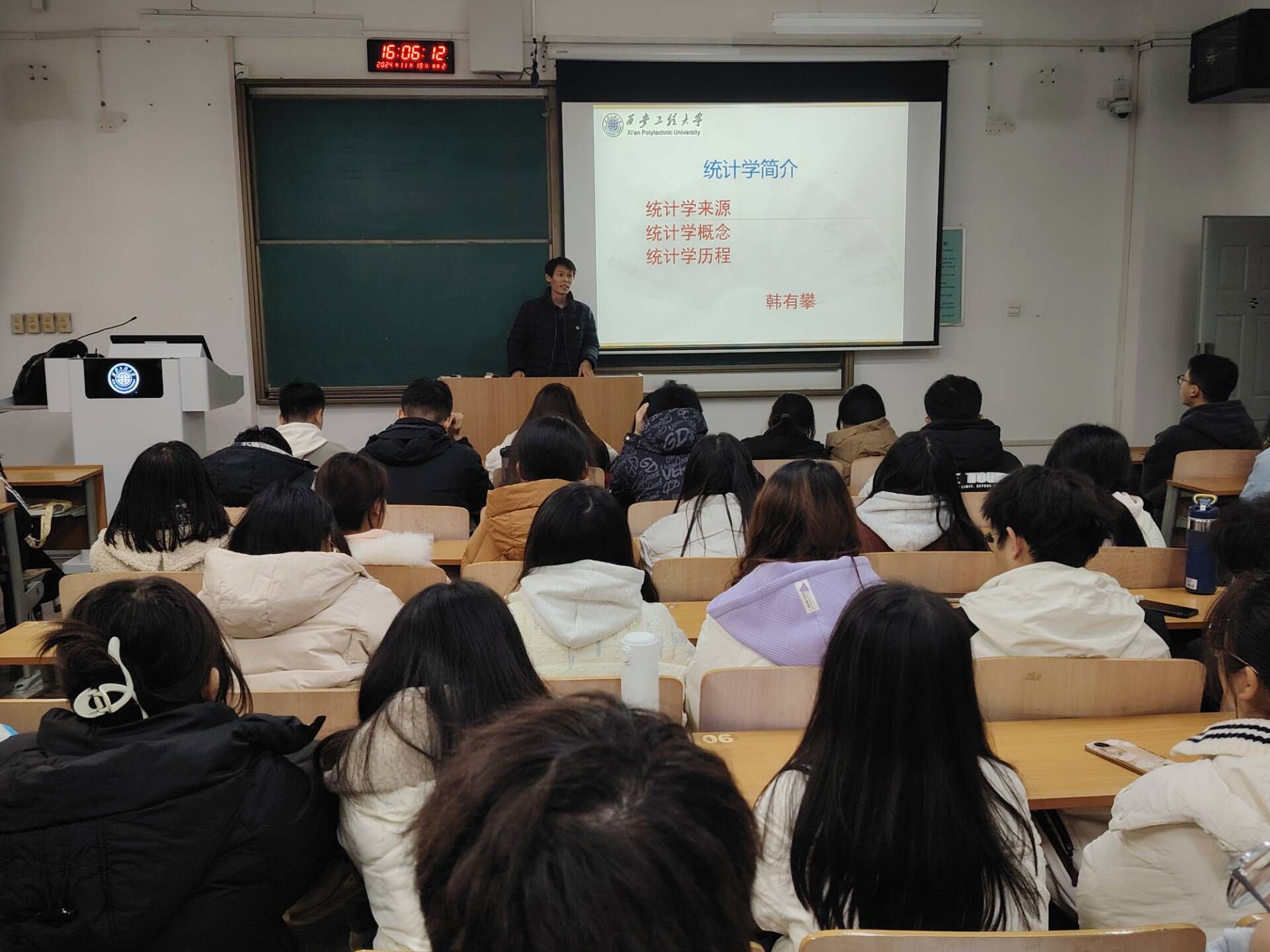 会上,韩有攀首先向同学们讲解了“三全育人导师团”成立的背景、重要意义、导师团成员构成、导师情况和工作职责。接着,他以专题讲座的形式,详细介绍了统计学的基本概念、发展历程以及在现代社会中的应用。解析了统计学的专业特点和专业方向,并结合自身多年教学和实践经验,深入阐述了统计学专业的就业方向与就业前景,提升了员工对所学专业的认同感,激发了同学们学好专业知识与技能的内在驱动力。导师团秘书宋琦表示“三全育人导师团”的组建始终坚持以员工为中心的理念,导师们将会以自己所有的经验和学识为同学们在思想政治教育、学业指导、创新创业指导、心理健康教育、职业生涯规划与就业指导、综合能力提升等方面解答疑惑迷茫并提供有效的解决方法,帮助同学们更好地掌握自己未来的方向。